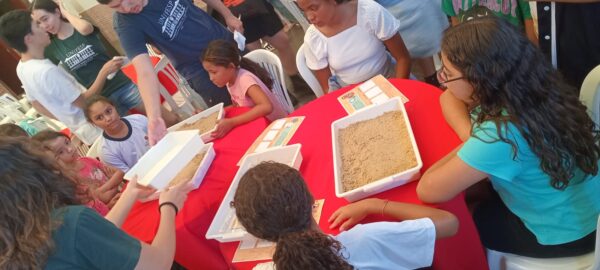 «Essa prática faz parte de um projeto de extensão universitária em que os alunos da UNIFESP desenvolvem atividades sobre Paleontologia e sobre fósseis brasileiros ao longo do semestre e apresentam para crianças do ensino básico. Essas são atividades lúdicas para que as crianças aprendam sobre fósseis brincando e se divertindo.