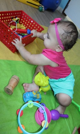 Há também aqueles bebês que já no primeiro contato com o ambiente do CEI se socializam e interagem com muita espontaneidade.