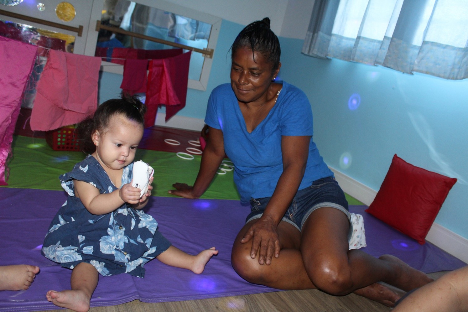 Uma outra bebê, em seu primeiro dia, veio acompanhada de sua vovó para o período de adaptação. A avó compartilhou que a bebê é bem cuidada pela família, com muito amor, e que ela dá o suporte necessário juntamente com a madrinha da criança.