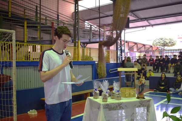 Durante a celebração, as FMA do CENSA receberam uma lembrança especial confeccionada na Máquina de Corte e Gravação a Laser da Sala Maker do colégio. O presente simbolizou a integração entre a tradição centenária das FMA e a inovação tecnológica presente no ambiente educativo.