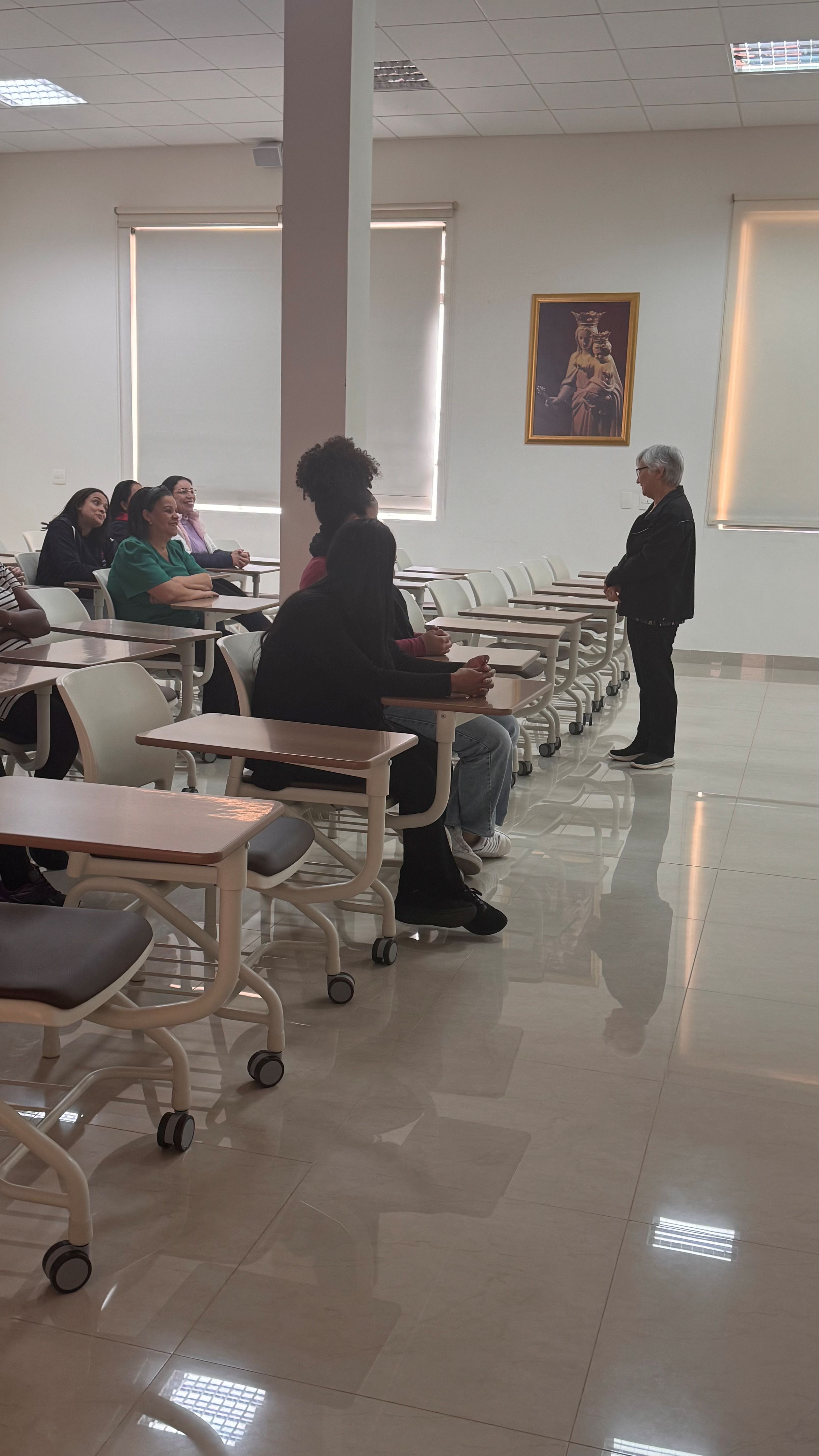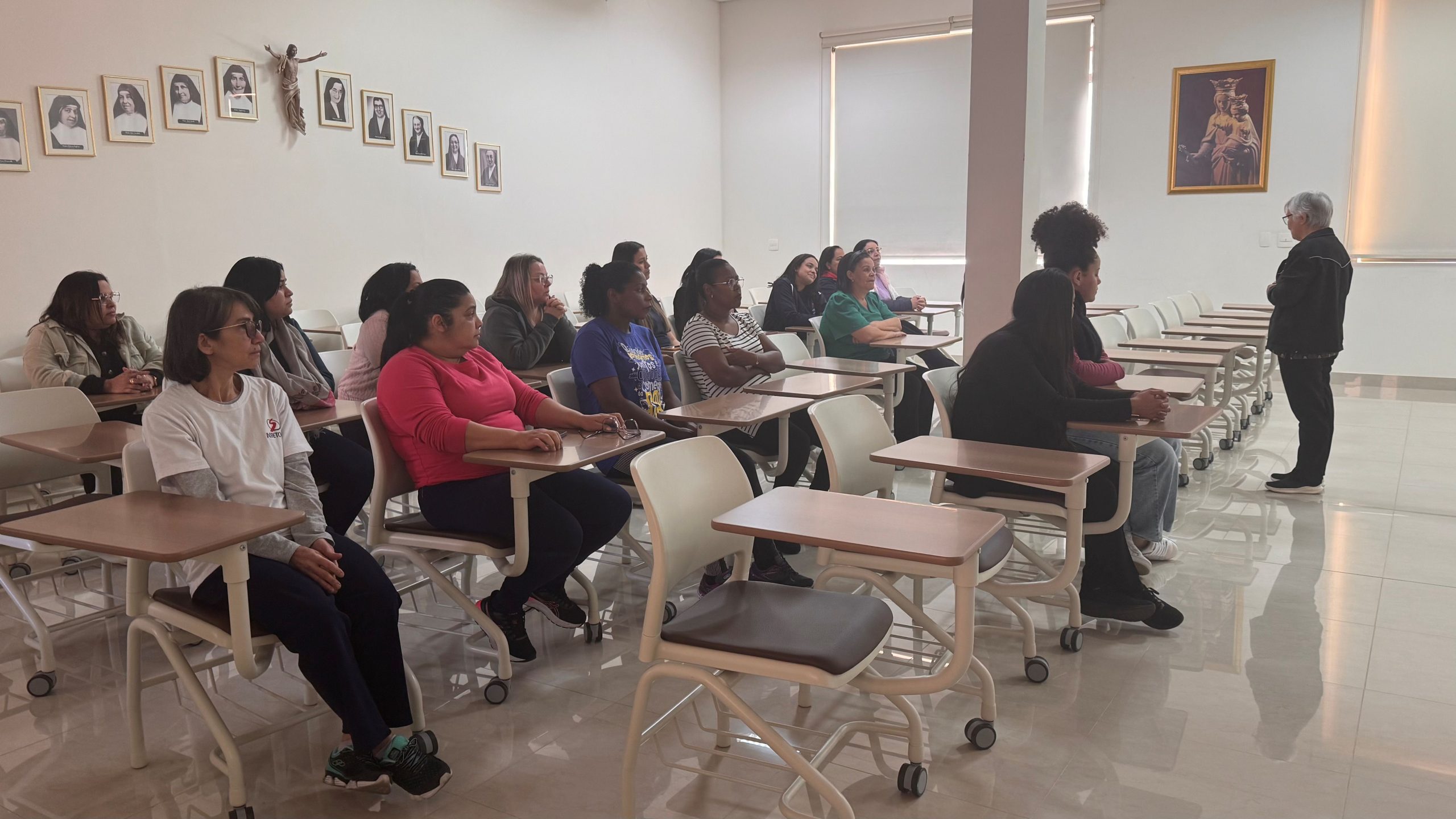 Durante o encontro, os educadores assistiram a um vídeo que apresentou a trajetória desses dois grandes fundadores, aprofundando o conhecimento sobre a vida e a missão que os uniu. Irmã Helena destacou aspectos essenciais da caminhada de Dom Bosco e de Madre Mazzarello, como a fé inabalável, a pedagogia do Sistema Preventivo — baseada na razão, na religião e na amabilidade — e a convicção de que todo educador é chamado a ser presença amiga, referência segura e inspiração para os jovens.