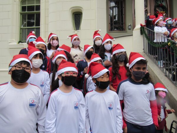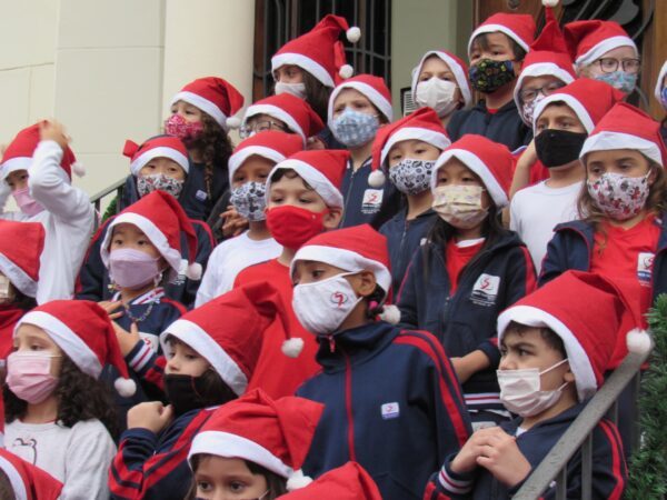 O Colégio de Santa Inês realizou no dia 07/12 (terça-feira) a apresentação do Coral de Natal, com os alunos da Educação Infantil e Ensino Fundamental I. Com muito entusiasmo, as crianças se posicionaram no jardim da entrada do Colégio e encantaram o público com canções natalinas em português e também com apresentações musicais em inglês, deixando uma mensagem de esperança e união para todos.