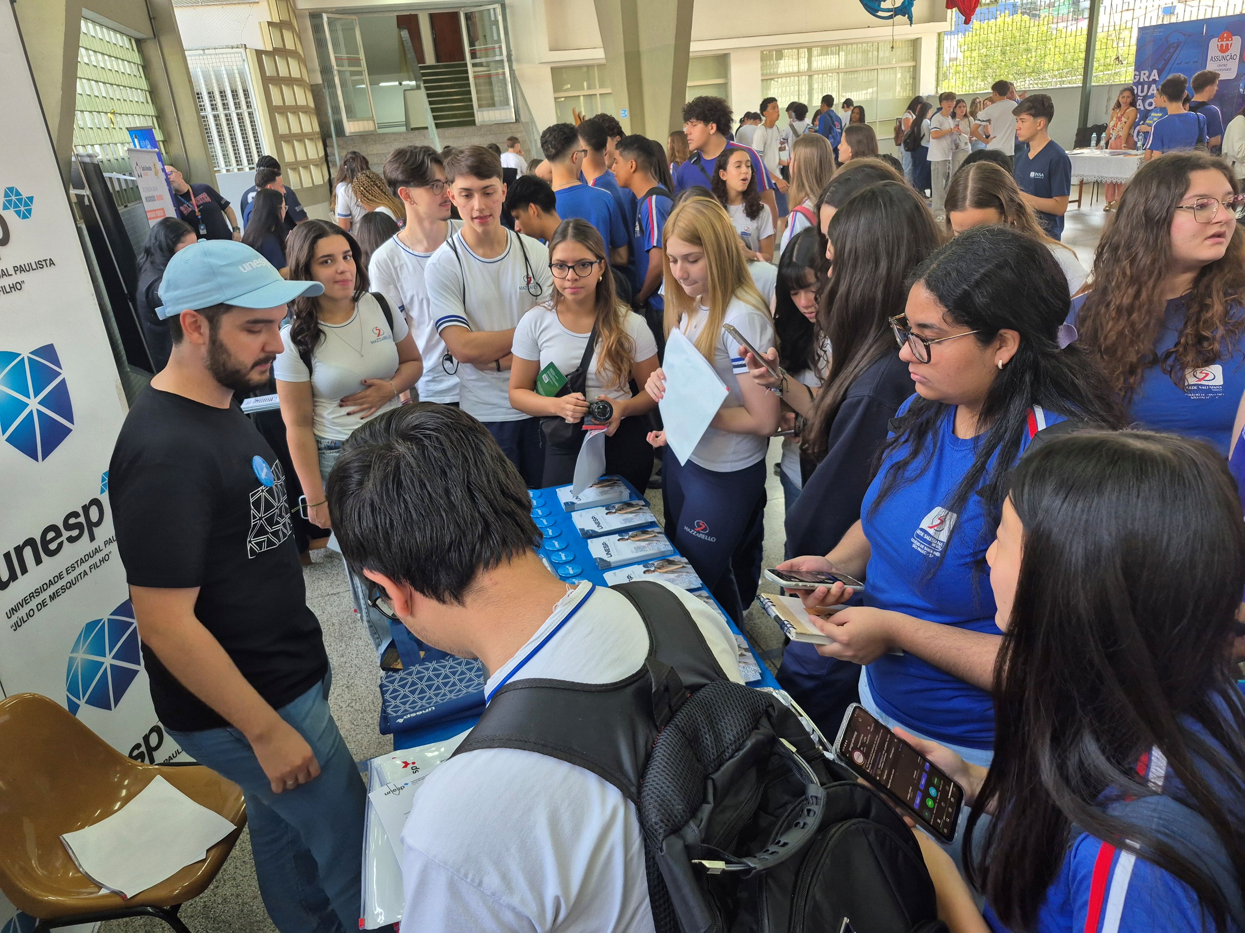 Após a palestra inicial, os estudantes tiveram a oportunidade de visitar estandes de diversas instituições de Ensino Superior. Os jovens conheceram um pouco mais sobre faculdades e universidades públicas e privadas e também sobre programas de intercâmbio. Cada um pôde conversar com os representantes das instituições presentes, saber mais sobre os cursos oferecidos e também participar de momentos de interação e brincadeiras.