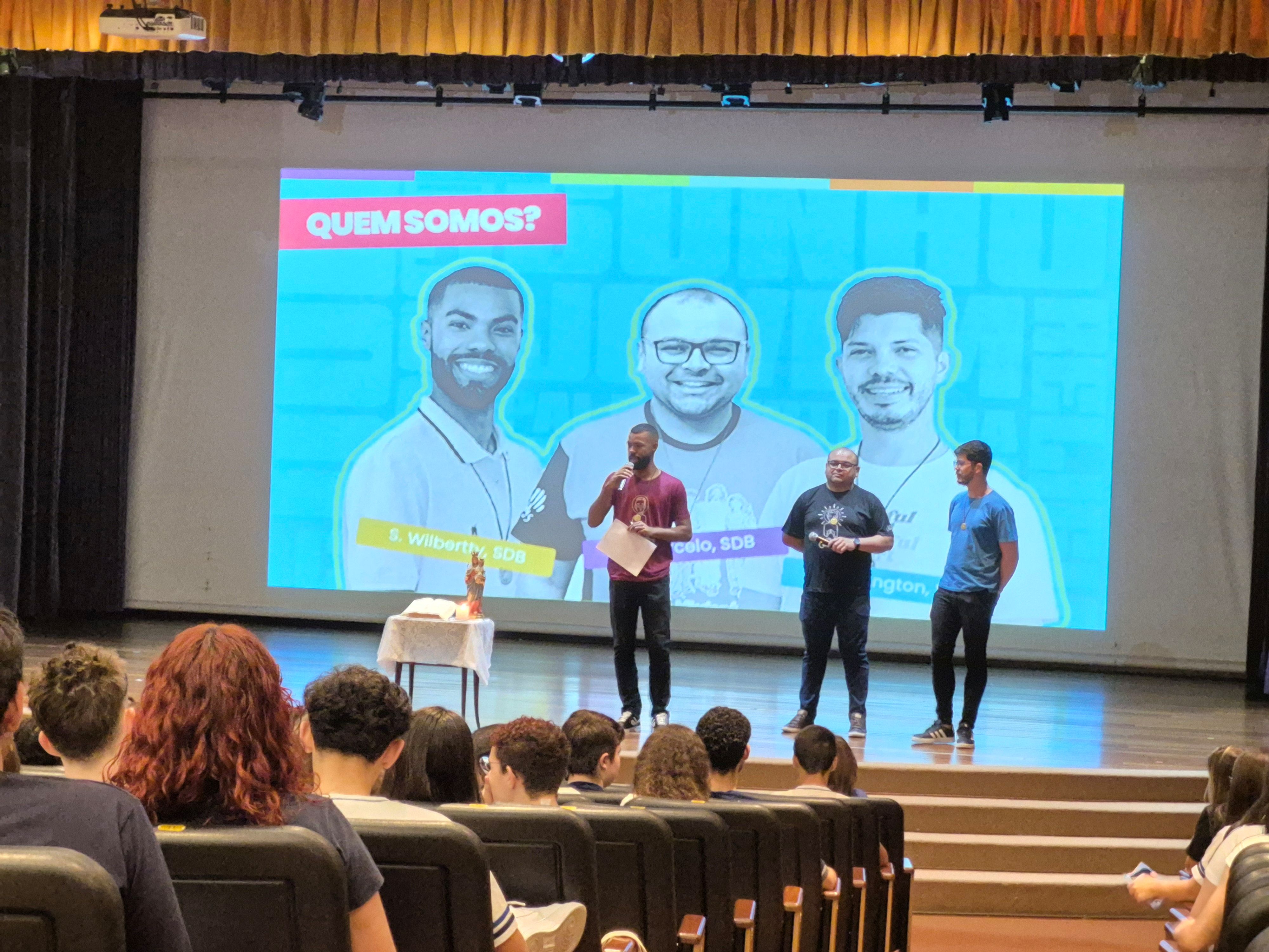 Seguindo as tradições de uma casa salesiana, o evento começou com um momento de acolhida e oração, que foi trazido pelos Irmãos Salesianos Wilberty, Wellington e Marcelo. Lembrando o mês das vocações, o tema abordado para a reflexão dos jovens foi justamente o chamado que Deus faz a cada um. A passagem bíblica que foi apresentada foi a Vocação de Jeremias, que ensina que Deus chama pessoas com propósito, capacita-as com sua presença e as envia para cumprir sua vontade. Foi uma oportunidade de internalização e autoconhecimento, em que cada estudante pode pensar sobre suas escolhas e seu “chamado”.