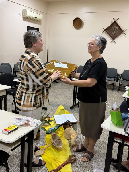 Irmã Maike compartilhou detalhes do encontro presencial da ECOSAM, realizado em San Lorenzo, Paraguai, no qual foi avaliado o triênio 2023-2025 e planejado o triênio 2026-2028, além da nomeação da nova coordenadora da equipe.