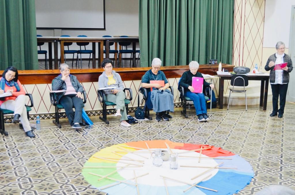 O segundo dia foi iniciado com uma forte experiência de oração, a partir da comunidade de Jesus Cristo, dirigida por Irmã Solange de Fátima Sanches, Mestra de noviças, que fez o grupo rezar o cotidiano da vida comunitária, com leveza, profundidade e compromisso fraterno.