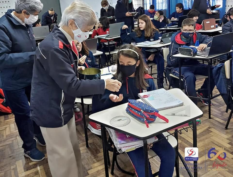 Neste ano, as urnas para a entrega das cartinhas ficaram dispostas nos corredores da escola, acompanhadas por um símbolo: uma dezena do Terço que, durante a cerimônia, foi levada por colaboradores e alunos e, na sequência, unida às demais, formaram o grande Terço em frente ao altar de Maria Auxiliadora. Todos os estudantes receberam das Irmãs Salesianas, que fazem parte do Instituto Laura Vicuña, um doce e uma medalha de Maria Auxiliadora, em comemoração à grande festa celebrada.