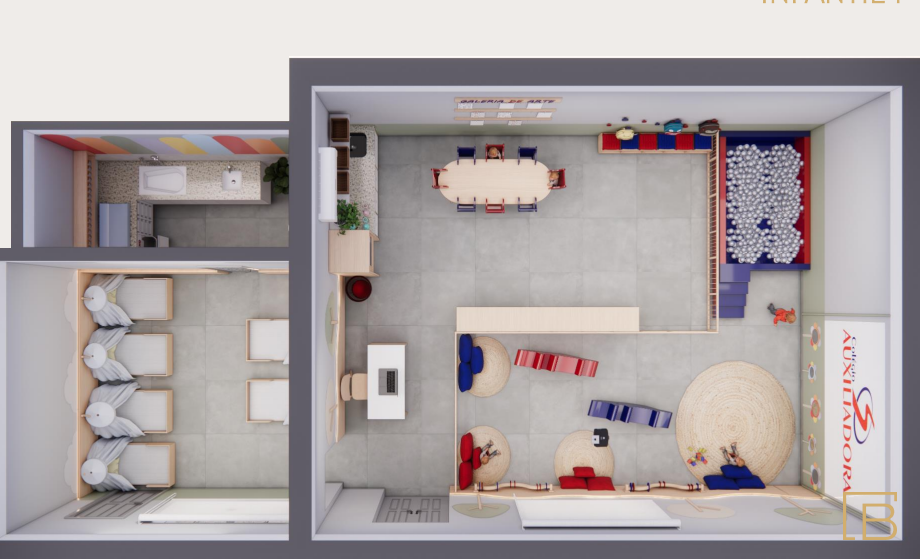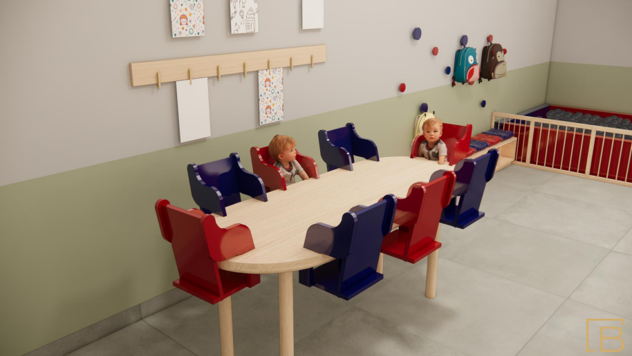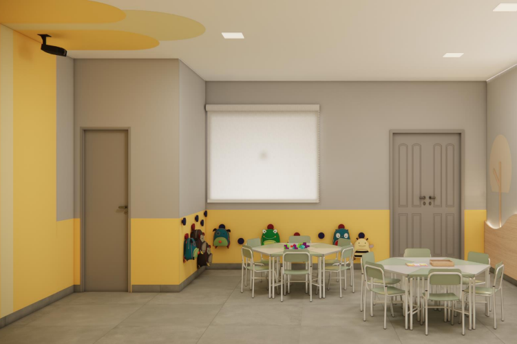Salas ampliadas e mais iluminadas, com ventilação otimizada e climatização; Portas e janelas ampliadas para melhor circulação e conforto; Pisos e revestimentos de fácil limpeza e alta durabilidade, adequados ao uso infantil; Adequações de acessibilidade e segurança; Criação/qualificação de áreas pedagógicas especiais, como ateliê de luzes, ateliê de psicomotricidade, ateliê de pintura, ateliê de texturas, espaço de descanso e áreas externas de convívio e brincadeiras; Mobiliário escolar adequado à faixa etária, privilegiando ergonomia e autonomia.