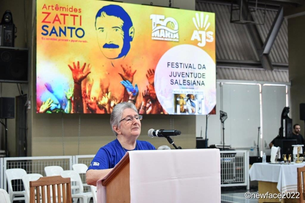 Perguntei também à Irmã Solange Sanches: Como está sendo a experiência de vivenciar pela primeira vez o Fest Salesiano, agora que nossa Inspetoria foi ampliada e abrange também os estados da região Sul? Eu queria ter mais olhos e mais pernas, diz ela, só para poder estar em todos os espaços ao mesmo tempo, porque é muita beleza, é muita criatividade, é muita vida! Então eu tento me dividir um pouquinho em cada espaço, mas eu sinto que eu fico incompleta, que eu não consigo ver totalmente a experiência, mas me comove muito ver um protagonismo juvenil! Ver que nós temos uma multidão de jovens em nossas mãos que nós não podemos perder, porque são eles que vão dar continuidade ao carisma salesiano nesses 150 anos daqui para frente!