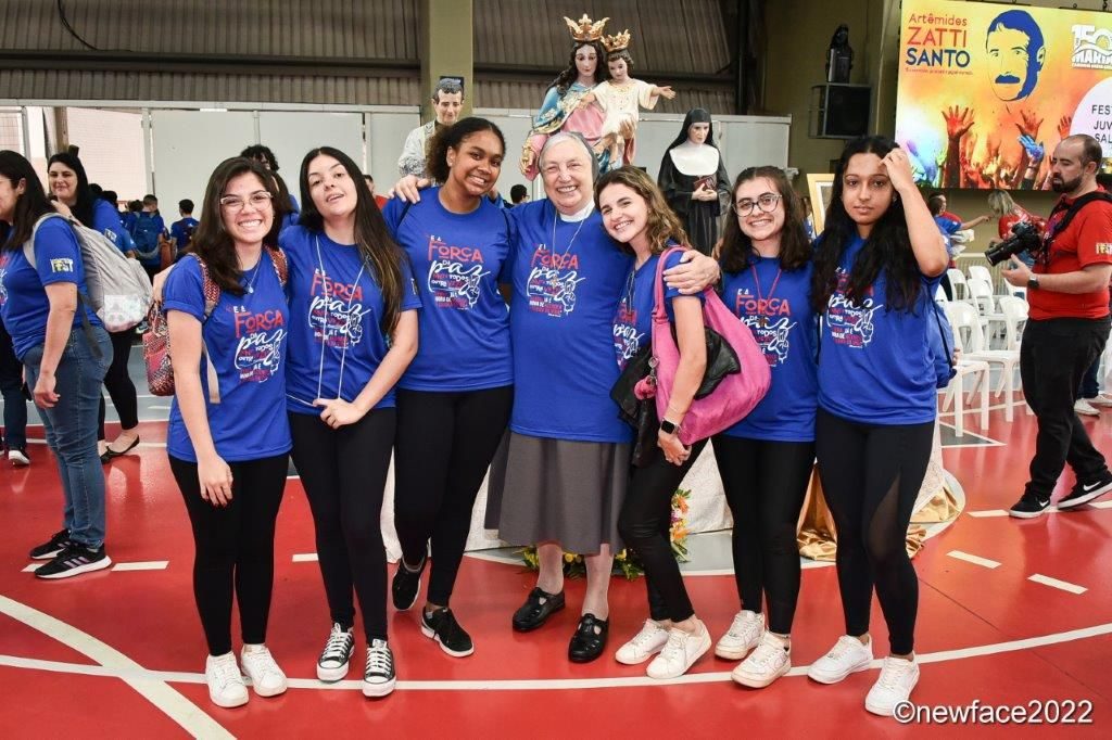 E 2022 trouxe além do retorno presencial, também as celebrações do Instituto das Filhas de Maria Auxiliadora, que completou 150 anos de fundação e 130 de presença no Brasil, contando com a presença pra lá de especial da Superiora Geral emérita, Madre Yvonne Reungoat. Sempre sorridente e cheia de muitos abraços calorosos para dar, Madre Yvonne encantou com suas palavras acolhedoras em meio a seu sotaque marcante, arriscando ainda um gentil e carinhoso português em terras brasileiras. E se deixou também encantar pela recepção dos milhares de jovens ali reunidos e atentos aos seus sorrisos radiantes e palavras sempre maternais. Uma alegria que se traduz em delicadeza providencial para tal ocasião, um verdadeiro presente de Deus que só fez abrilhantar o nosso dia!