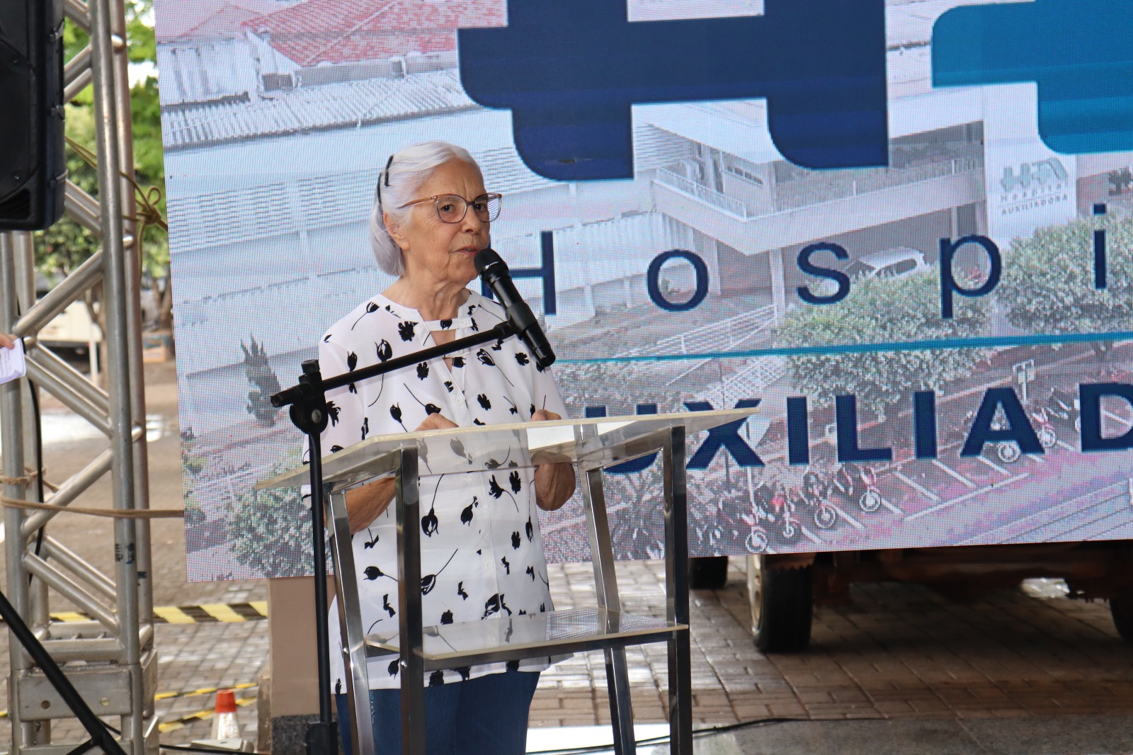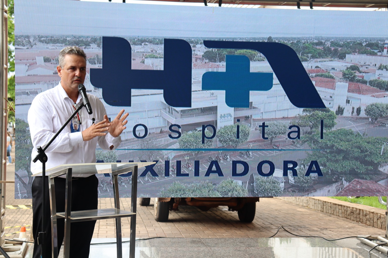A diretora financeira iniciou a abertura da cerimônia agradecendo aos presentes e por compartilharem deste momento tão importante da saúde para a região, logo em seguida o Bispo Luiz Knupp realizou o momento de bênção e oração, juntamente com o vídeo gravado pela Diretora Presidente, Ir. Ivone Ranghetti.