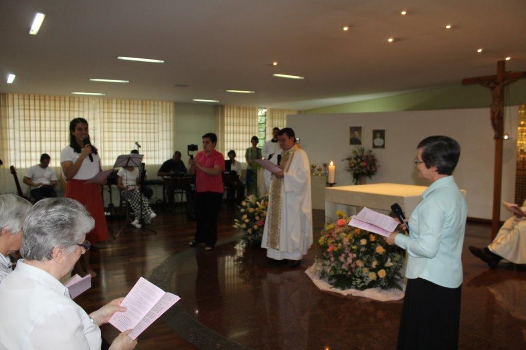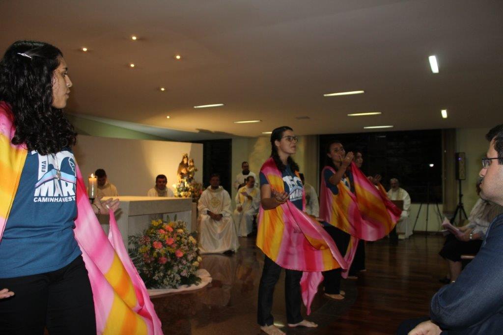 Para concluir a Celebração, Irmã Alaíde Deretti fez os agradecimentos e apresentou para a comunidade reunida as FMA junioristas que no dia anterior renovaram sua Profissão Religiosa, as jovens que estão iniciando ou continuando o Noviciado e também um grupo de jovens que está no período de acompanhamento e discernimento vocacional. Também os jovens Salesianos em período de formação foram apresentados à comunidade.