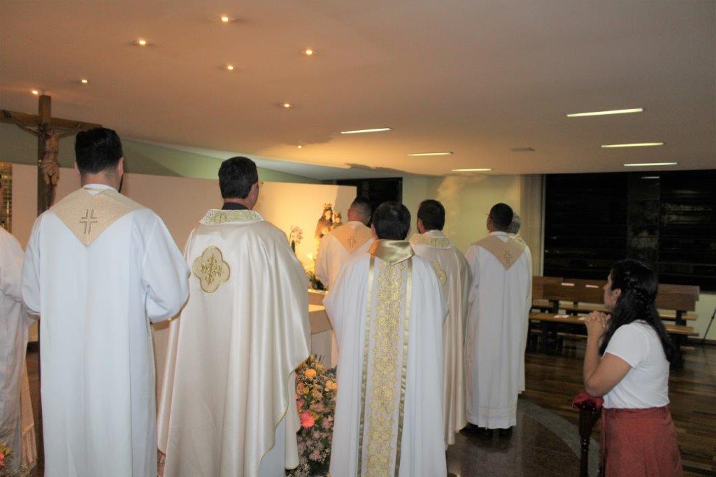 Depois dos Exercícios Espirituais realizados no Centro de Espiritualidade Flos Carmeli, de Mairiporã, um grupo de Filhas de Maria Auxiliadora (FMA) e jovens em formação, juntamente com membros da Família Salesiana, se reuniram no dia 14 de janeiro, às 18h, para participar da Celebração Eucarística, na capela da Casa Santa Teresinha (Lapa – SP).