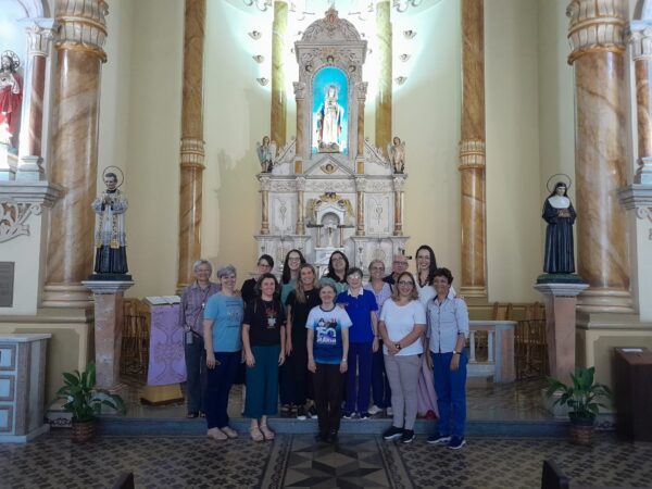 Em clima de fraternidade e convivência, continuaram a peregrinação até o Instituto Nossa Senhora do Carmo, localizado também em Guaratinguetá, primeira escola salesiana das Filhas de Maria Auxiliadora no Brasil. Lá o Núcleo Animador almoçou com as Irmãs da Comunidade local e realizou um percurso monitorado pelos ambientes inovadores e revitalizados da escola. Também participou de um momento de reflexão-ação conduzido pela Irmã Cleonice Lourenço sobre a Estreia 2023: “Como Fermento na Família Humana Hoje. A dimensão laical da Família Dom Bosco”, de autoria do Reitor-Mor Padre Ángel Fernández Artime, e sobre a Carta nº 1024 escrita pela Madre Chiara Cazzuola. A partir destes dois documentos inspiradores, os integrantes do Núcleo Animador foram convidados a elaborar um “Projeto Pessoal” que será avaliado a cada semestre, com o propósito de “Ser Fermento na Família Humana”, contemplando a relação com Deus, consigo mesmo (a), com o outro e com as coisas. Na oportunidade, Irmãs Salesianas e leigos presentes caminharam até a capela do Colégio do Carmo, participaram da “Adoração ao Espírito Santo”, também conduzida pela Irmã Cleonice e trocaram com um abraço a missão de serem “como fermento na família humana hoje”, simbolicamente representada por uma colher de pau enlaçada em uma garrafinha de vidro com fermento em pó para fazer pão. Depois do cafezinho, o Núcleo Animador se despediu e retornou para São Paulo.