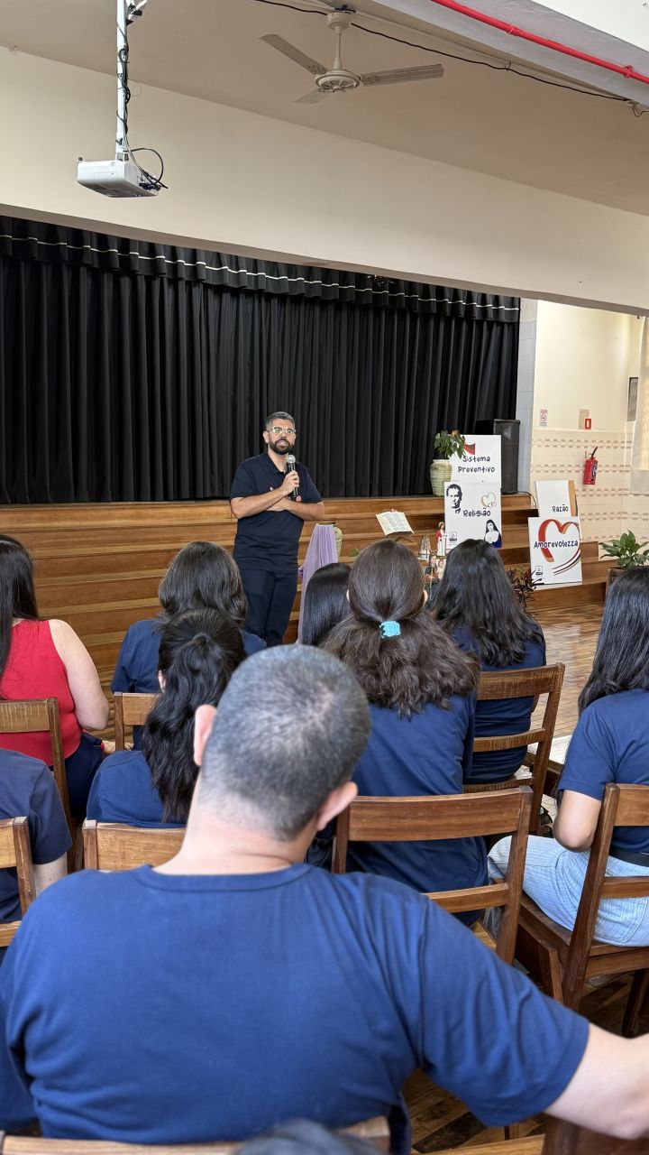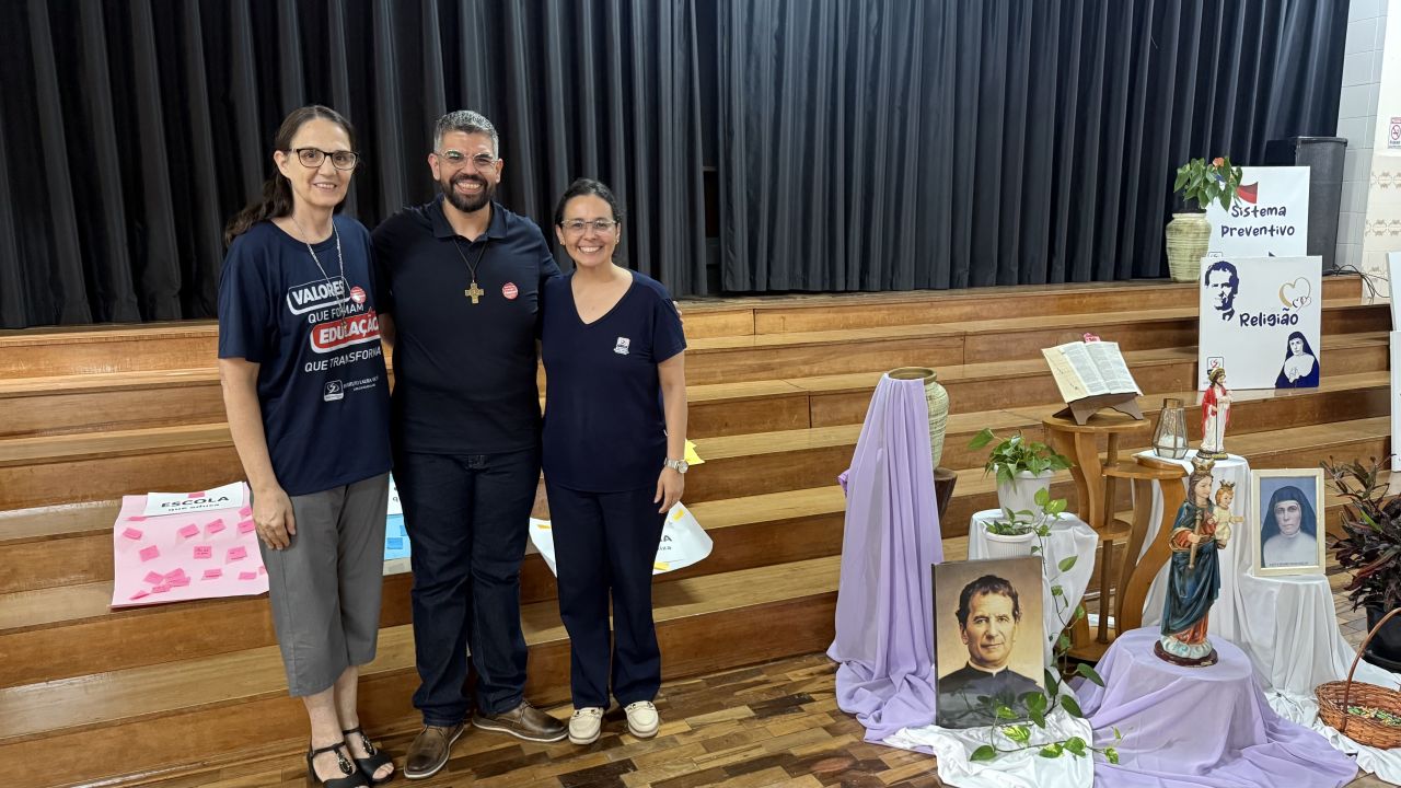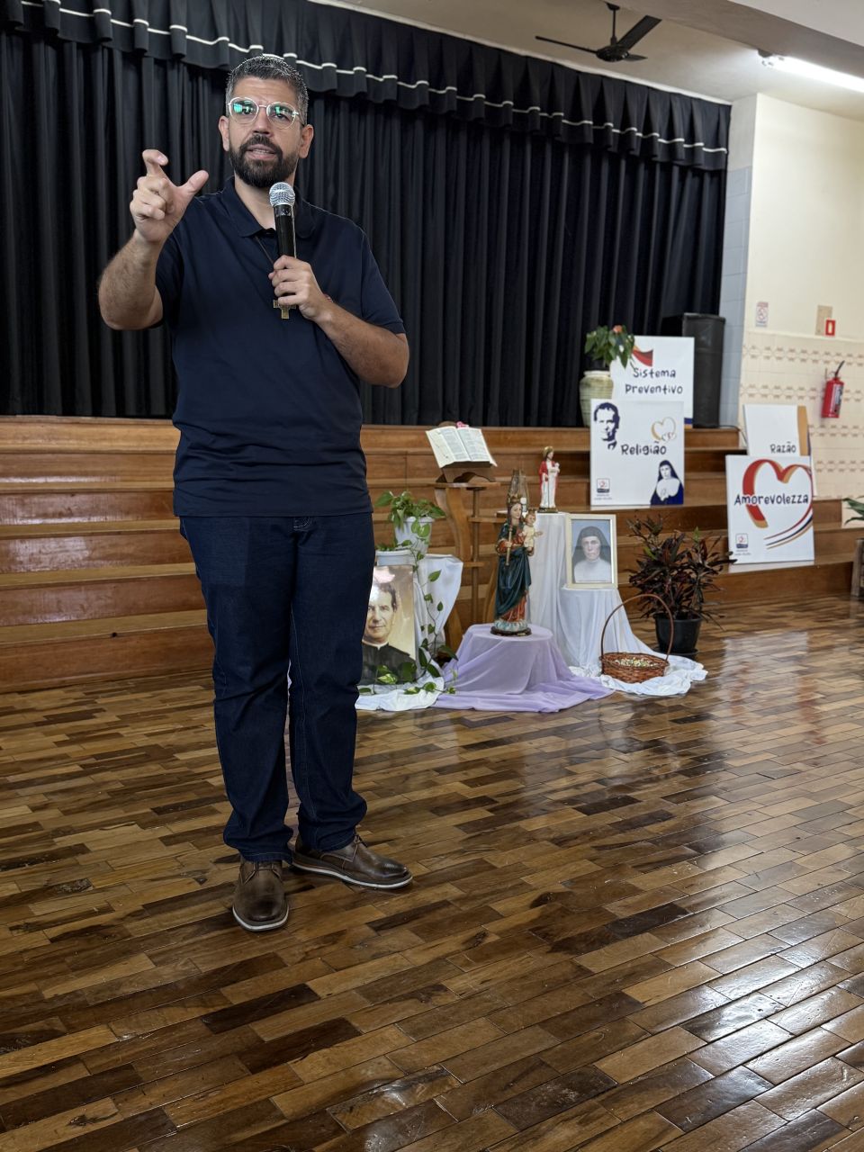 Em seguida, no Salão de Atos da escola, o convidado especial Padre Leandro Brum Pinheiro (Salesiano de Dom Bosco) conduziu um momento formativo com o tema «Salesianidade: para viver o Oratório (Sistema Preventivo)». Durante sua explanação, destacou o Sistema Preventivo como uma grande ferramenta da pedagogia salesiana, criada por Dom Bosco. Mais do que um método, trata-se de uma metodologia que contempla integralmente o currículo educativo, favorecendo o acompanhamento dos processos de desenvolvimento dos jovens e contribuindo para a formação de «bons cristãos e honestos cidadãos».