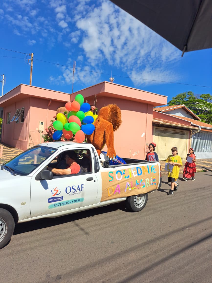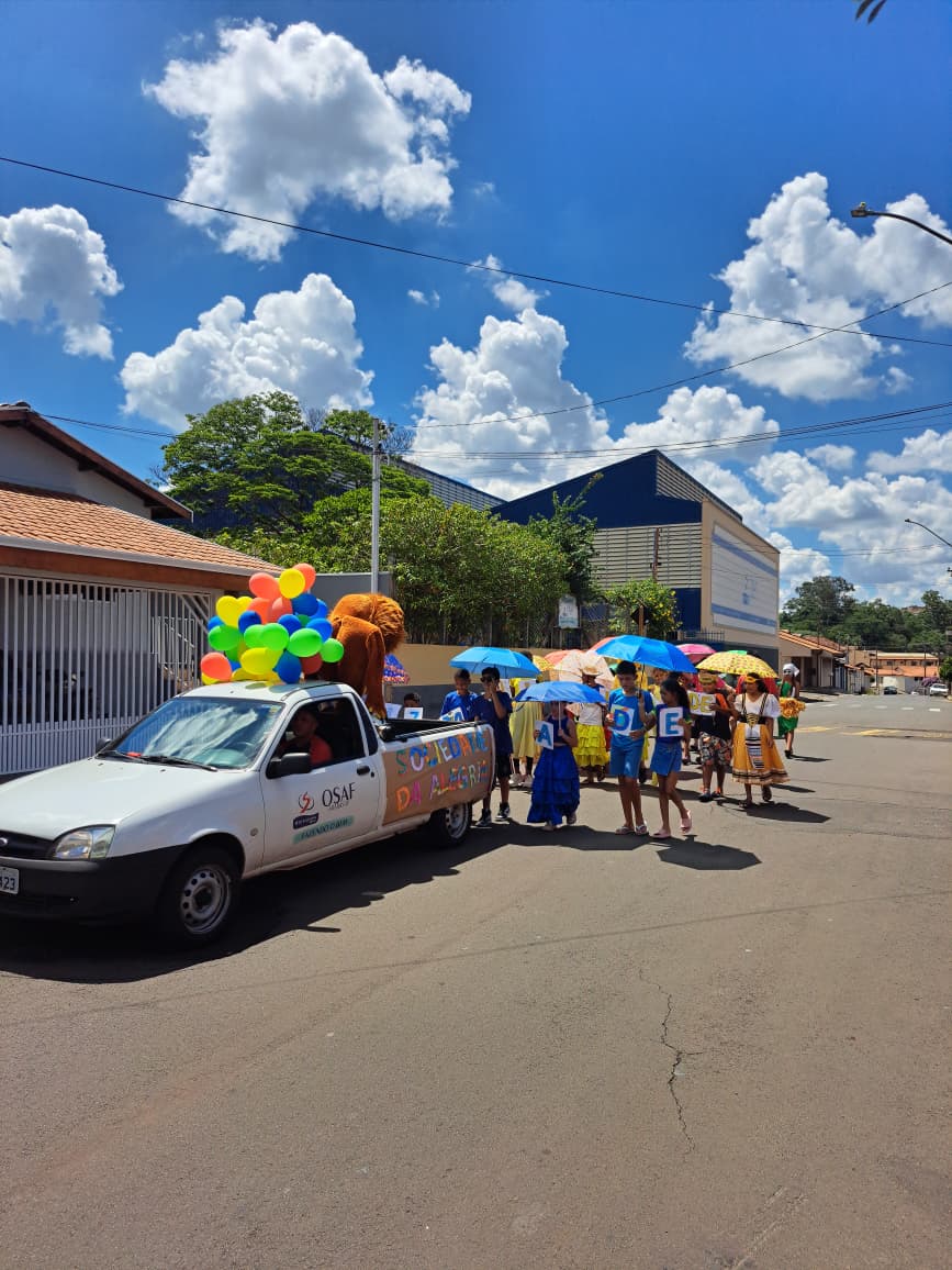 Durante a atividade, as alas Amor, Gratidão, Amizade e Felicidade ganharam destaque no desfile, representando valores essenciais que fazem parte da formação integral dos educandos. As turmas da manhã e da tarde participaram de um percurso pelo bairro onde está localizada a OSAF, levando cor, música e entusiasmo pelas ruas, aproximando ainda mais a instituição da comunidade.