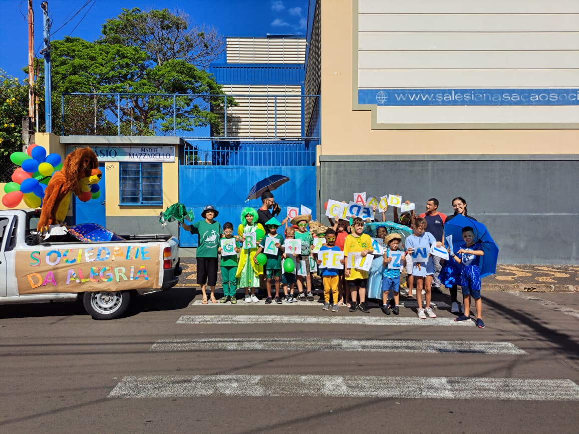 A Obra Salesiana de Apoio Fraterno (OSAF), de Araras (SP), realizou mais uma edição do seu tradicional Carnaval Temático, trazendo como inspiração a Sociedade da Alegria, iniciativa criada por São João Bosco ainda na juventude para atrair os meninos e promover a santidade entre eles por meio da alegria cristã. O evento foi marcado por muita animação, criatividade e, acima de tudo, pelo fortalecimento dos valores que fazem parte da identidade salesiana.
