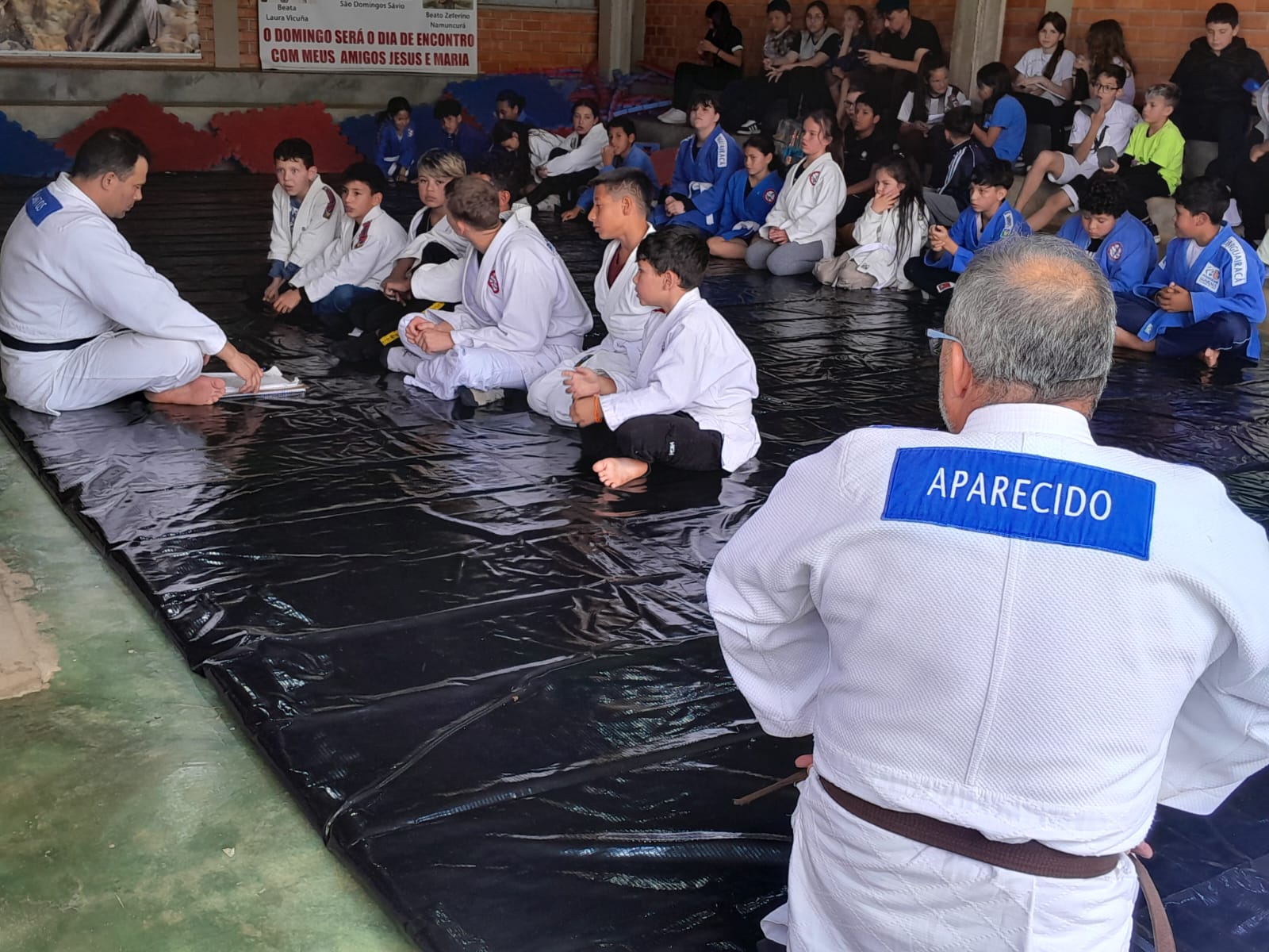 Um dos destaques da fala do “Sensei” Santos foi esclarecer que o Judô não é um caminho suave, podendo ser interpretado como caminho da suavidade e que cada judoca pode desenvolver dentro de si a suavidade. Retomou com as crianças a origem do Judô e falou do criador do Judô, Jigoro Kano.