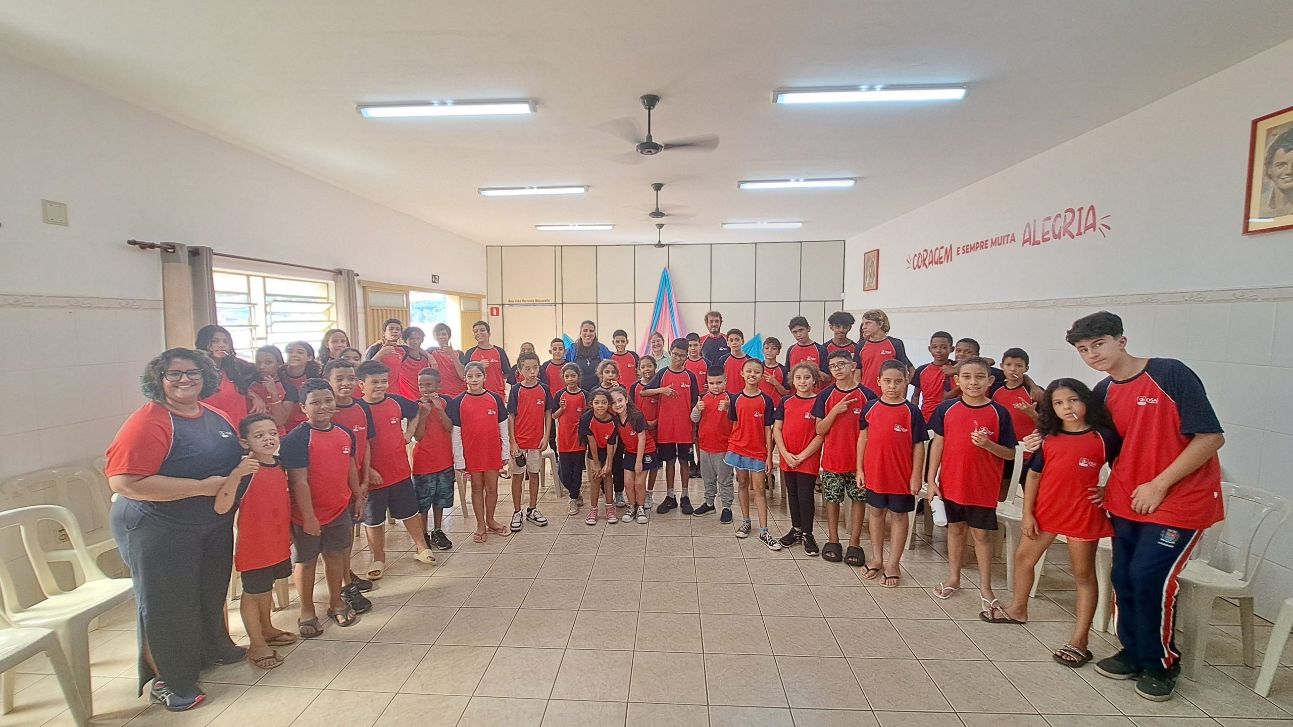 À tarde, foi a vez dos educandos homenagearem a visitante com um momento especial. Em um gesto cheio de carinho, os adolescentes leram frases em formato de coração e, em seguida, emocionaram a todos com a interpretação da música Oração (A Banda Mais Bonita da Cidade). Irmã Alaíde agradeceu com ternura e conduziu uma reflexão com os jovens, destacando a importância da partilha e como cada um pode contribuir para manter o “fogo aceso” por meio de seus dons e talentos.
