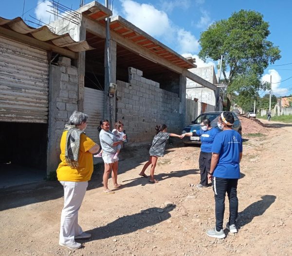 No período da manhã, a equipe participou do Movimento da Alegria e da Esperança, ação pedagógica/pastoral do Projeto Crescendo em Cidadania durante a Pandemia, que circula pelas ruas dos bairros Monte Serrat, Jurema e Parque Miraflor.