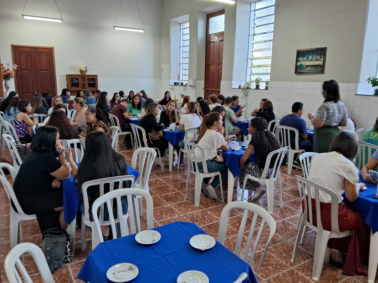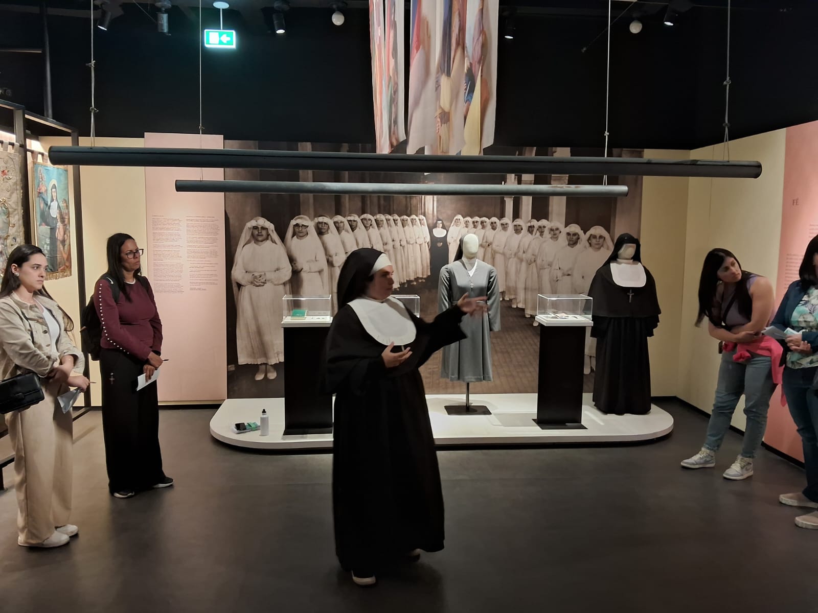 O período da tarde teve início com o almoço na primeira casa das FMA fundada no Brasil, o Instituto Nossa Senhora do Carmo, também localizada em Guaratinguetá - SP. Em seguida, em um clima de fraterna convivência, todos os educadores participantes se reuniram na capela do Colégio do Carmo para rezar e compartilhar suas percepções sobre as significativas experiências do período da manhã. Também visitaram outros espaços da escola, como a “Galeria” de fotos de todas as Diretoras desta primeira instituição salesiana no país, a “Sala de Memórias”, local que ilustra em suas paredes importantes registros fotográficos desde a fundação até os tempos atuais e o “Espaço São José”. Como recordação, a janela, a máquina de costura e o poço, figuras simbólicas da missão salesiana de Madre Mazzarello, foram esculpidas em singelas peças de madeira e entregues para cada educador(a), acompanhadas de um cartão expressando sincera “gratidão” pelos momentos vividos e compartilhados. No fim do dia, os agradecimentos pela rica «Experiência Mornesina» foram traduzidos em orações em uma linda celebração eucarística no Santuário Nacional de Nossa Senhora Aparecida (Aparecida - SP).