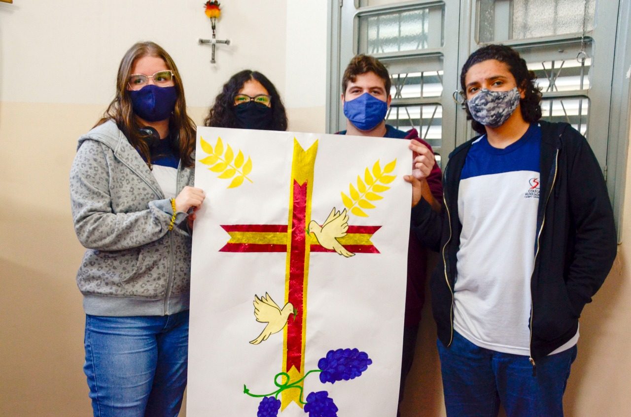 A celebração do Corpo de Deus no Colégio Auxiliadora seguiu a tradição católica da cidade de Campo Grande, em Mato Grosso do Sul. Durante as aulas de religião e educação artística, os jovens preparam com esmo os tapetes que embelezam e contextualizam a passagem do Santíssimo Sacramento.