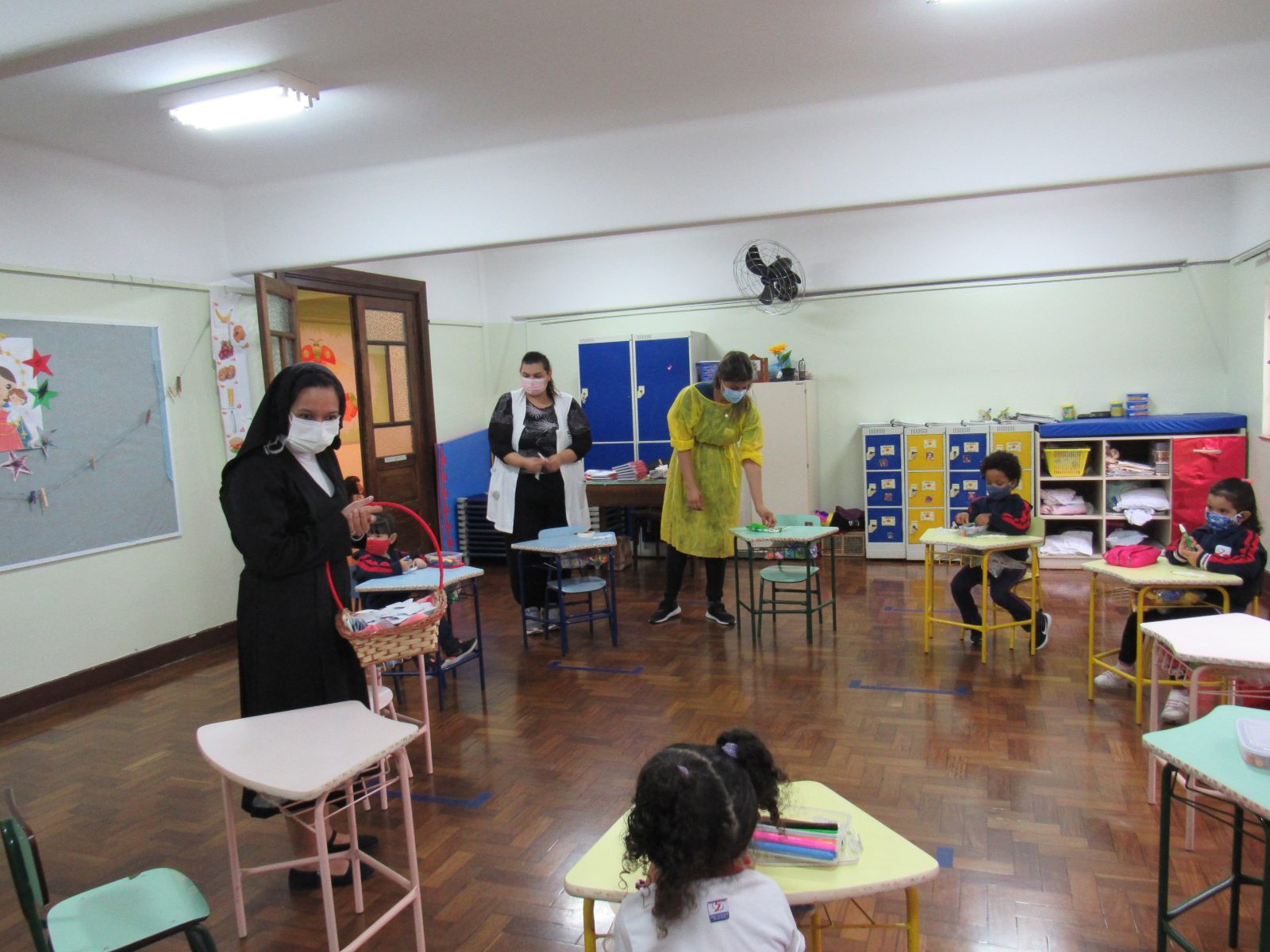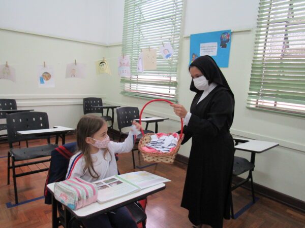 Durante o período da manhã, os alunos dos Ensinos Fundamental II e Médio eram recebidos e acolhidos com uma mensagem de entusiasmo e fé. Já no período da tarde, as crianças da Educação Infantil e Ensino Fundamental I receberam a sua visita em sala de aula. “Mazzarello” contou sua história de vida, a história das FMA e também distribuiu mensagens a todos.