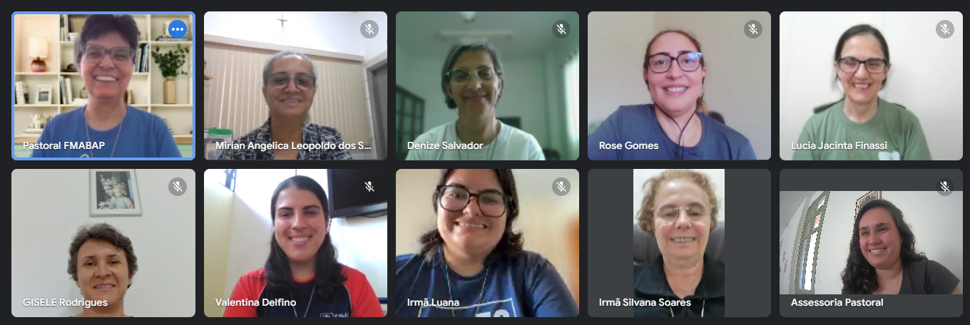 Na tarde do dia 6 de fevereiro, a equipe do Âmbito da Pastoral Juvenil (PJ) da Inspetoria Nossa Senhora Aparecida (BAP), de São Paulo (SP), realizou sua primeira reunião do ano, encontrando-se virtualmente para alinhar e planejar os próximos passos das diversas frentes de atuação neste novo ano que se inicia.