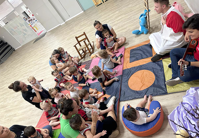 As celebrações ocorreram em todos os segmentos, inclusive no Berçário “Sentidos da Vida”. Lá, a Pastoral Escolar apresentou Jesus e alguns símbolos da Páscoa para os bebês em uma contação de história, recheada de músicas.