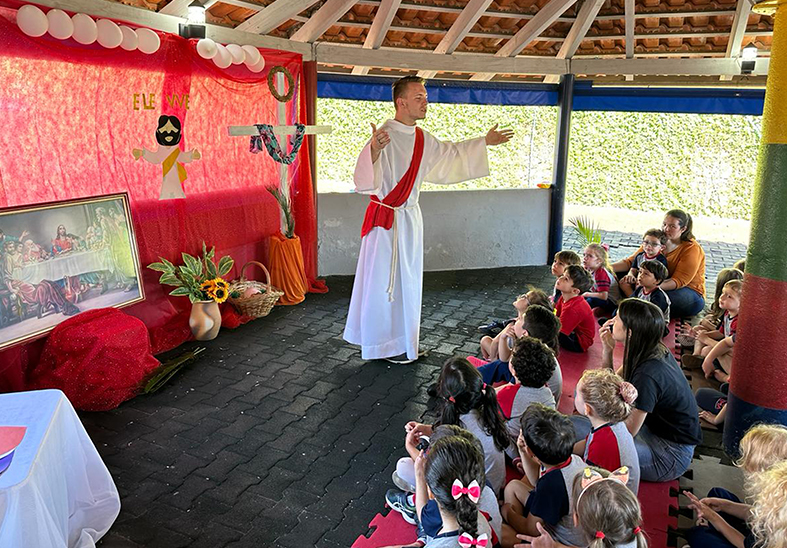 Na Educação Infantil, uma surpresa especial foi preparada. Enquanto as crianças cantavam uma música com a Irmã Aline de Oliveira Leite, o Coordenador de Pastoral Escolar, Lucas, representando Jesus, chegou montado em um cavalo. As crianças se encantaram e participaram com muito entusiasmo, aprendendo mais sobre os ensinamentos do Cristo.