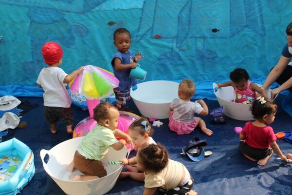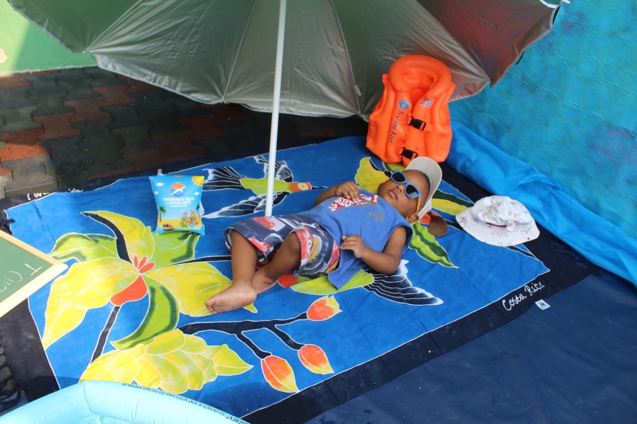 Num dia ensolarado, nada melhor do que um momento de muita diversão. As educadoras criaram um espaço bem atrativo e muito gostoso, literalmente uma praia dentro do CEI Pingo de Gente. «Não vamos negar: até nós professoras sentimos vontade de dar um mergulho. Aquelas mãozinhas pequenas que batiam na água pareciam grandes chafarizes a céu aberto e muitas carinhas com grandes sorrisos iluminavam aquele momento», concluíram Daniele e Ângela.