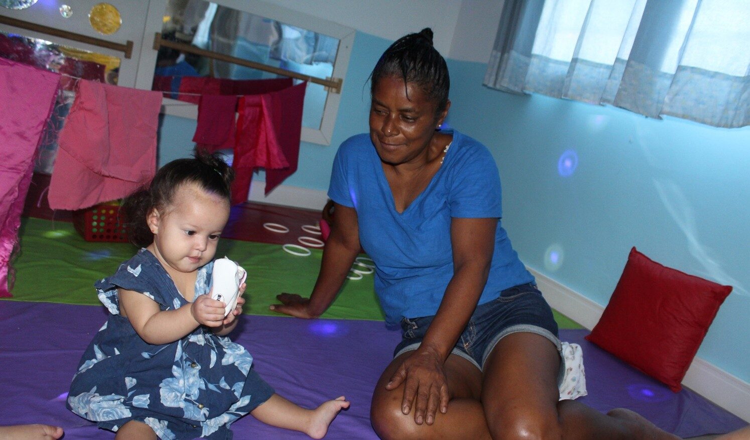 Uma outra bebê, em seu primeiro dia, veio acompanhada de sua vovó para o período de adaptação. A avó compartilhou que a bebê é bem cuidada pela família, com muito amor, e que ela dá o suporte necessário juntamente com a madrinha da criança.
