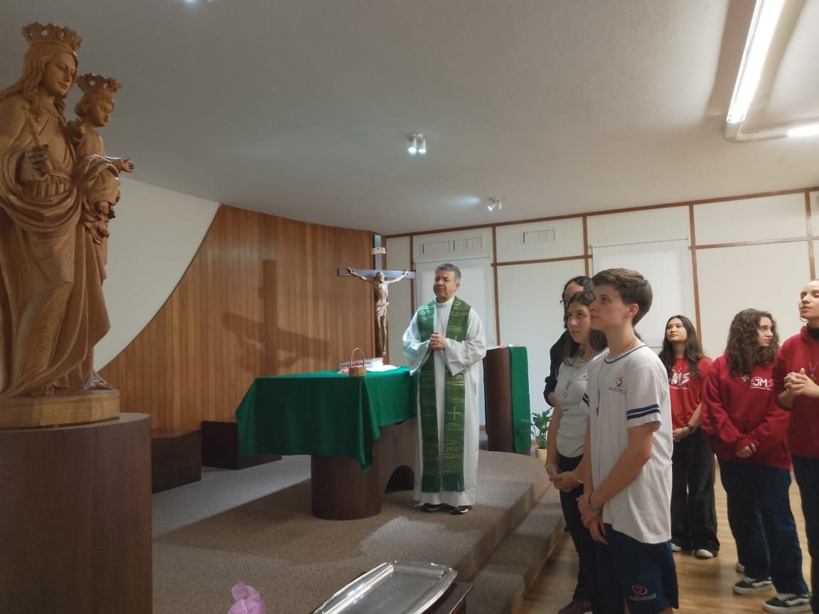 Com os educadores, colegas e familiares dos missionários, as celebrações de envio contaram com a palavra dos Diretores locais e Coordenadores de Pastoral, bênção e entrega da Cruz Missionária para aqueles que vão participar pela primeira vez.