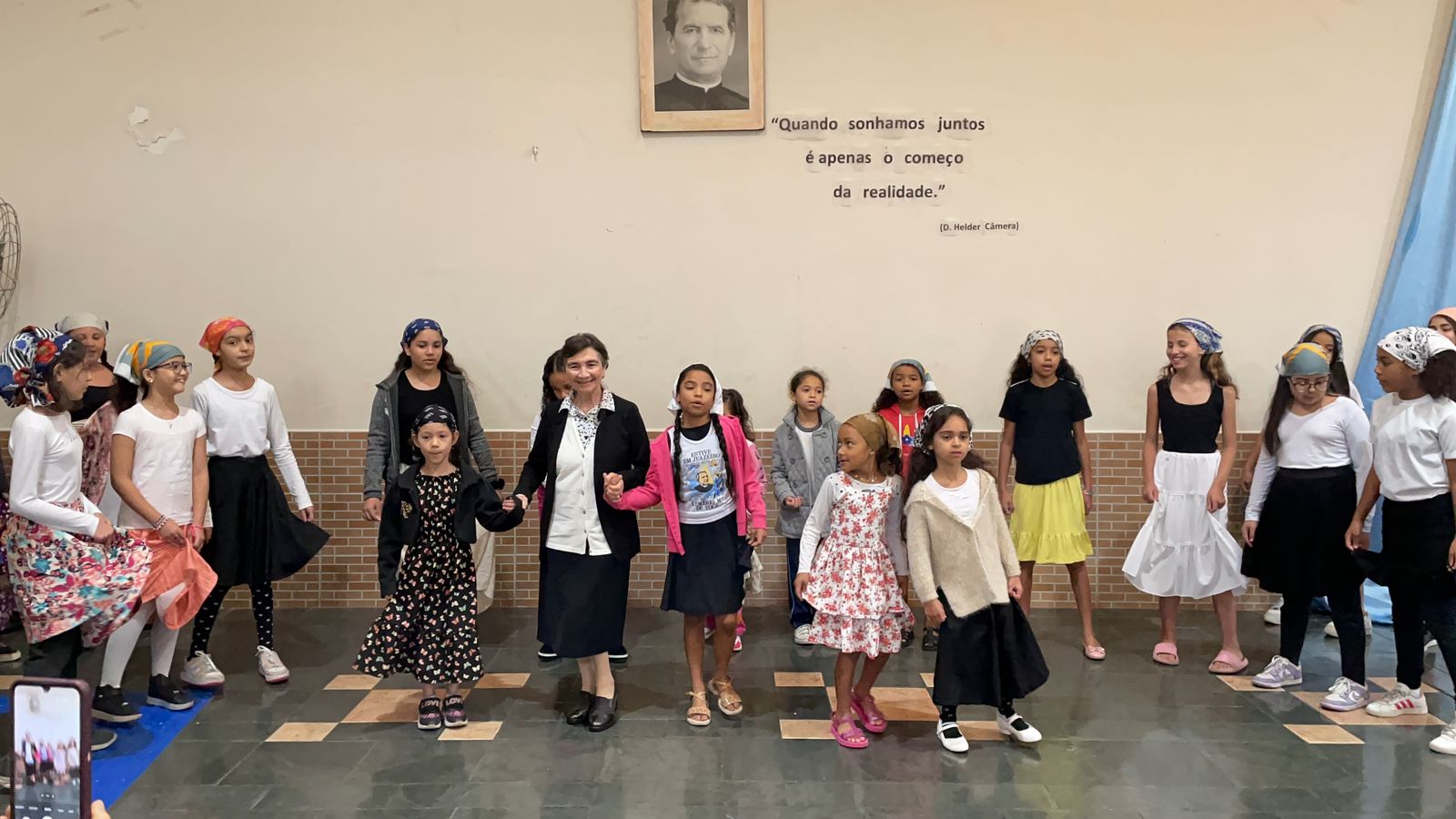 Ao longo do dia, educadores, crianças e adolescentes prepararam apresentações culturais, com atividades nos turnos da manhã e da tarde. As apresentações incluíram paródias que retratavam a rotina do Centro, além de esquetes de teatro, dança, música e muita alegria. Durante sua conversa com as crianças e adolescentes, a Irmã Paola sublinhou a importância de viverem com o coração aberto e sempre com verdadeira alegria, destacando que a felicidade é uma forma de refletir o amor de Deus.