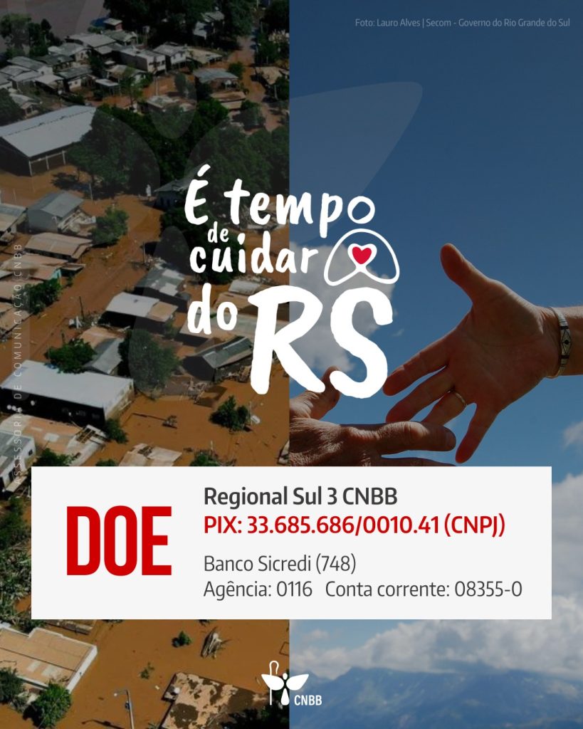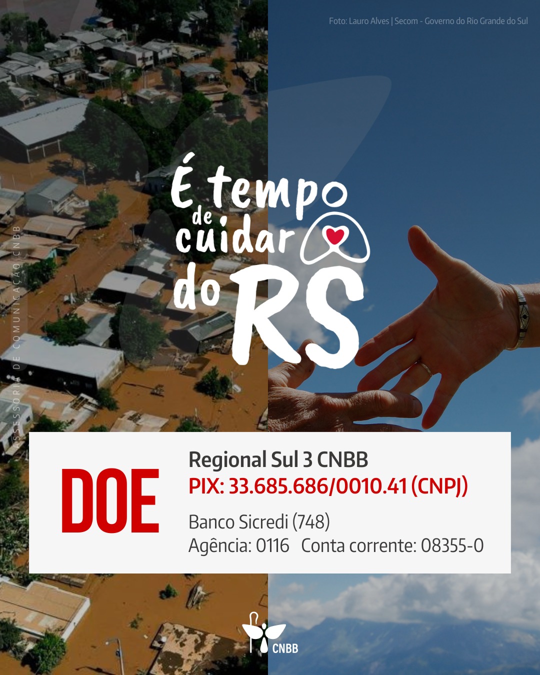 A Conferência Nacional dos Bispos do Brasil (CNBB) lança a campanha “É Tempo de Cuidar do Rio Grande do Sul”, com iniciativas de oração, solidariedade e informação da Igreja no Brasil (CNBB) pelo povo do RS.