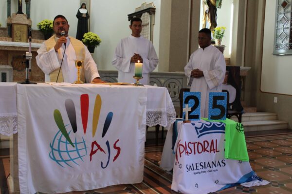Ao chegarem ao colégio, os convidados participaram de uma Celebração Eucarística ministrada pelo padre Rafael. A missa também contou a participação do pré-noviço Gabriel Guirão, ex-aluno do Auxiliadora e bastante atuante na Pastoral Juvenil. Durante a celebração, o padre relembrou a trajetória da AJS e as tantas vivências que o movimento proporciona aos jovens. Um Oratório Salesiano, com jogos, esportes e brincadeiras, encerrou a manhã festiva.