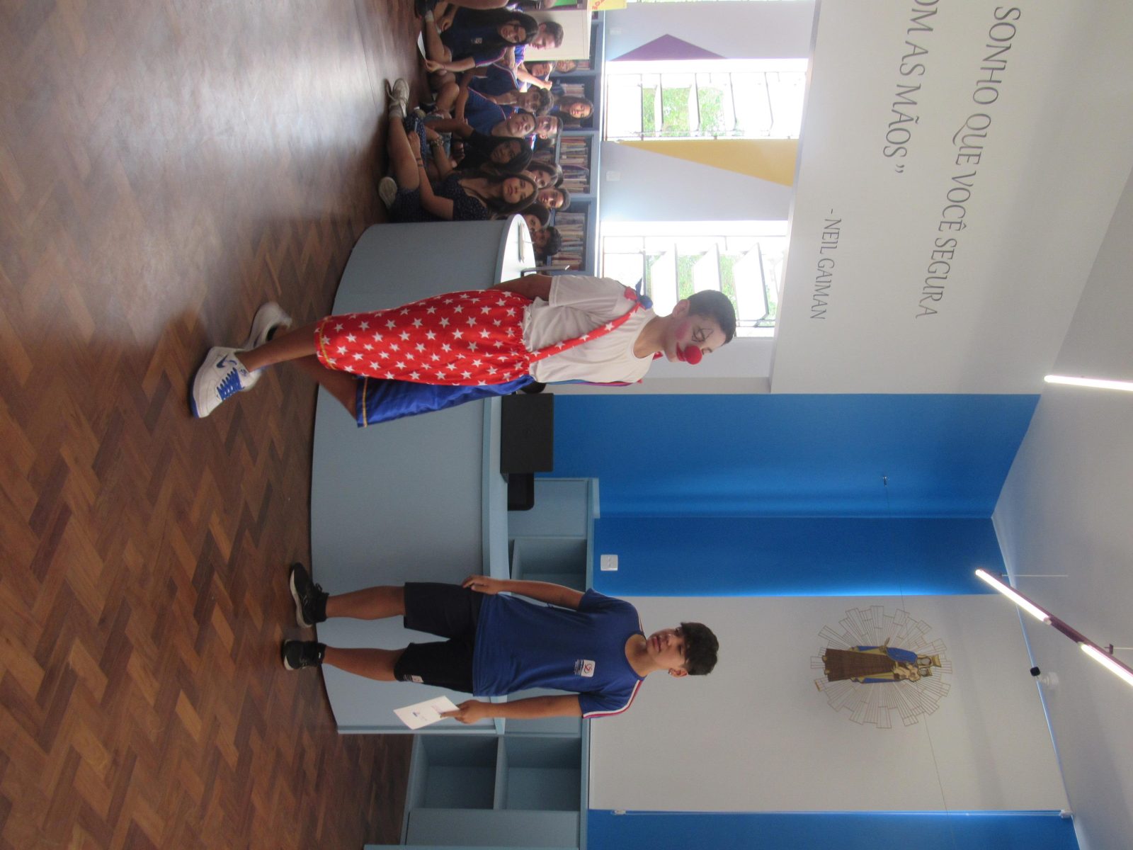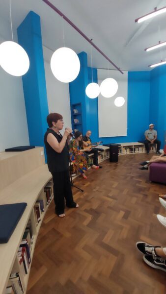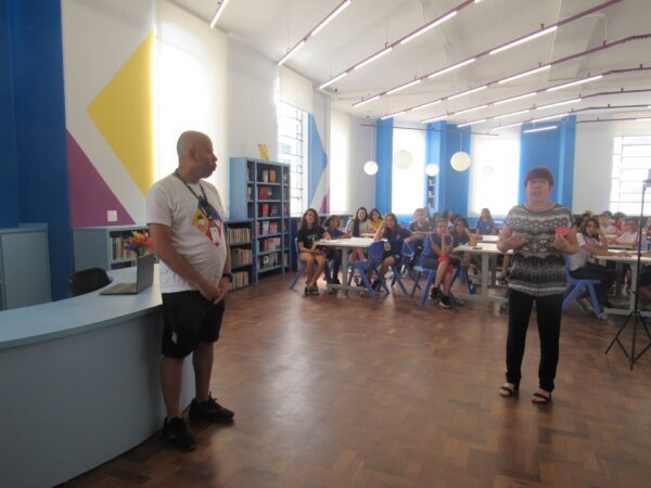 Logo após essas palavras, tomados de emoção, foi a vez de um grupo de estudantes do Ensino Fundamental Anos Finais e Médio apresentarem outra versão do sarau, organizado também pelo professor Pedro. Dessa vez, a performance contou com novos textos e a própria participação do professor. Foi um momento que encantou a todos os presentes.
