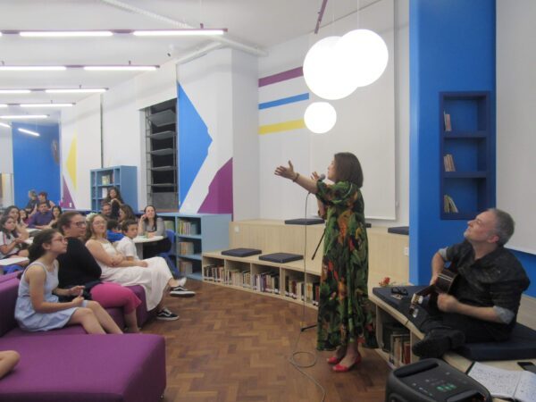 A grande surpresa dessa cerimônia ficou por conta do “pocket show” da cantora e ex-aluna do Colégio de Santa Inês, Paula Santisteban. Acompanhada de seu esposo, o músico Eduardo Bologna, Paula cantou grandes clássicos da música popular brasileira e relembrou com muita emoção do tempo que esteve no Colégio, tanto como aluna quanto como professora. “Quando eu fui professora aqui da escola, eu tinha um coral. (...) Eu dei aula durante onze anos aqui, e todo ano ele se apresentava e todo ano tinha um tema diferente. Teve um ano que nós resolvemos fazer músicas do Tom Jobim com poemas do Vinicius de Moraes. Quem escolheu esses poemas foi a Ir. Edméa [Battaglia], nossa professora de português. Uma professora maravilhosa e uma pessoa muito boa também. E eu lembrei dela, agora, aqui dentro da biblioteca”. O “pocket show” animou o público, que cantou junto e se emocionou.