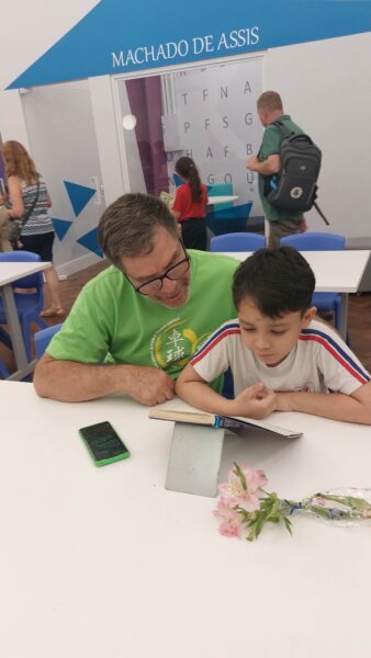 Com o encerramento do show, estudantes, famílias e educadores foram explorar a Biblioteca Dom Bosco, seu acervo, salas de estudo e estúdios de gravação e podcast. Foi um momento de interação e integração entre escola e família, que observavam tudo com muito entusiasmo. “Eu estava esperando muito a abertura da biblioteca, eu estava muito ansiosa para vir ler aqui”, comenta a aluna Alicia, do 7º Ano do Ensino Fundamental.