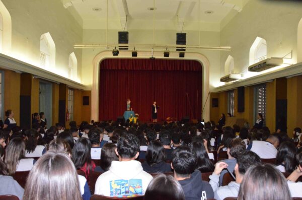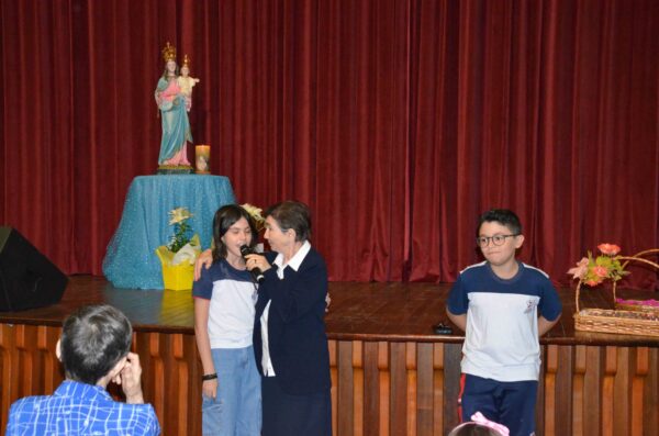 No dia 1º de agosto, Irmã Paola encontrou-se com os alunos do Ensino Fundamental 2 e Ensino Médio, logo pela manhã; em seguida, dirigiu-se à Educação Infantil e ao Ensino Fundamental 1, matutino. No período vespertino, encontrou-se com o Ensino Fundamental 1 e a Educação Infantil no Salão Nobre da escola. Falou de valores, amizade, espiritualidade, fé, talentos e usou uma linguagem bem específica para cada turma que acolheu.