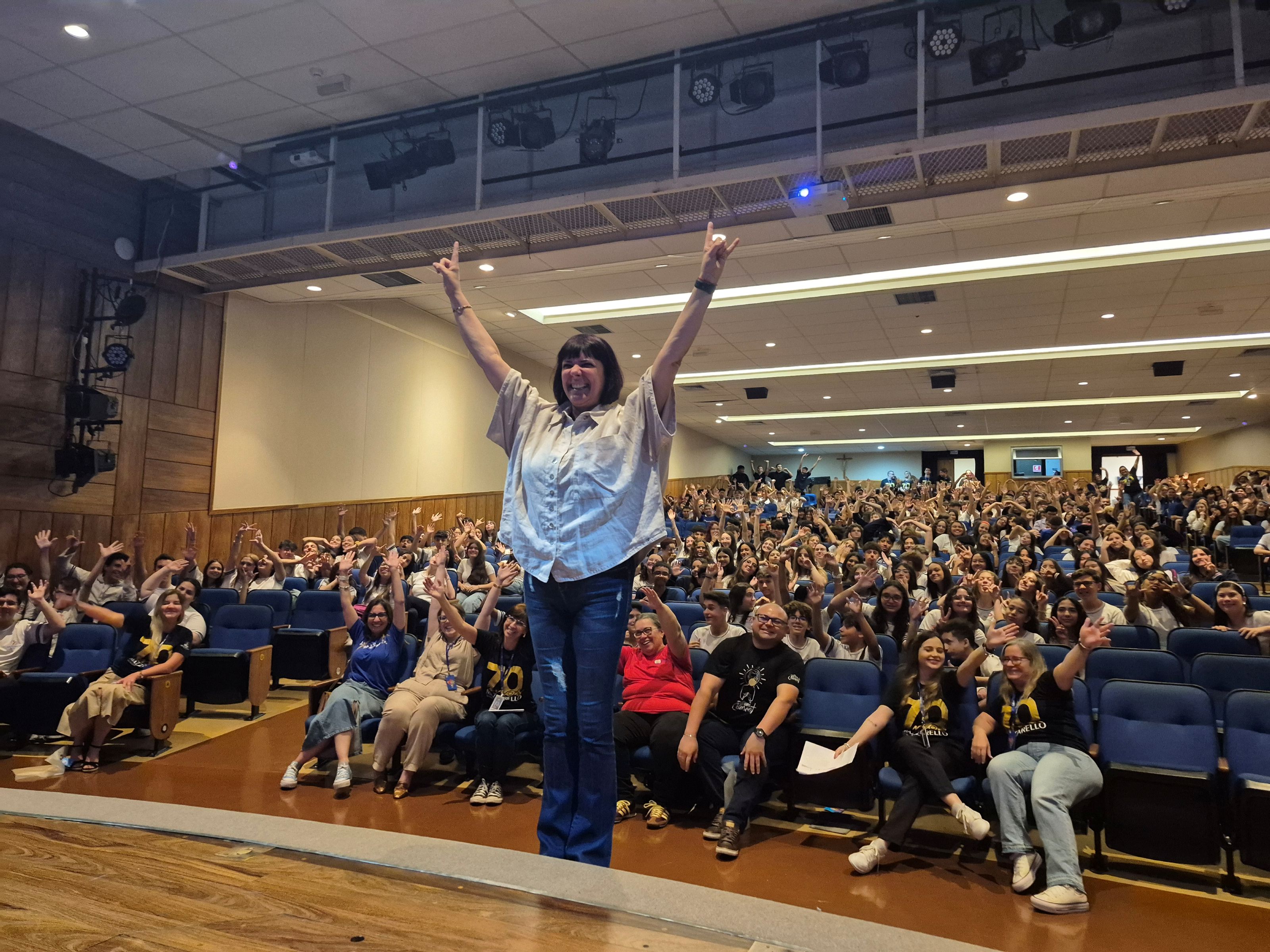 A palestra de abertura do evento ficou por conta da Professora Ana Lucia Pita, que falou sobre as habilidades necessárias para o profissional do futuro e ressaltou a importância das competências comportamentais. De um modo dinâmico e irreverente, Ana Lucia mostrou que com os avanços da inteligência artificial, o mercado de trabalho está passando por constantes mudanças em curtos períodos de tempo. Ela destacou também que o que irá diferenciar cada profissional serão as suas capacidades de flexibilidade, criatividade, comunicação e inteligência emocional. Ao final, ela deixou um recado aos jovens: “Se não quer ser substituído por um robô, não aja como um robô”.