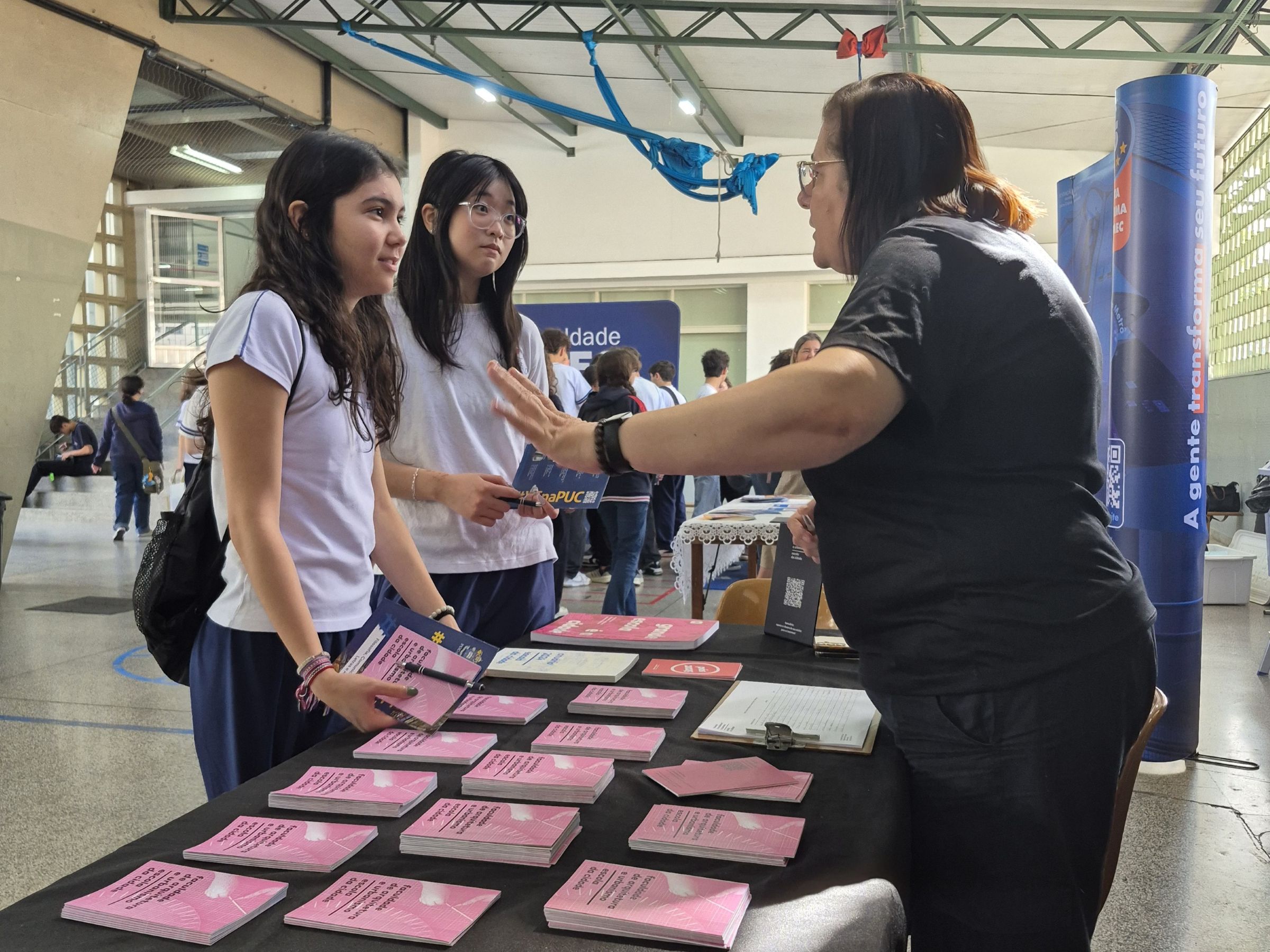 Após a palestra inicial, os estudantes tiveram a oportunidade de visitar estandes de diversas instituições de Ensino Superior. Os jovens conheceram um pouco mais sobre faculdades e universidades públicas e privadas e também sobre programas de intercâmbio. Cada um pôde conversar com os representantes das instituições presentes, saber mais sobre os cursos oferecidos e também participar de momentos de interação e brincadeiras.
