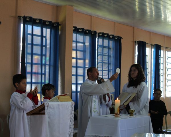 Os participantes viveram este momento de gratidão de forma concentrada e com grande envolvimento. As crianças foram espontâneas durante a celebração, especialmente ao responderem às perguntas do sacerdote durante a homilia. Os quatro coroinhas que serviram na celebração são crianças atendidas pelo Instituto de Ação Social João Paulo II, e a acólita atua como voluntária na Obra.