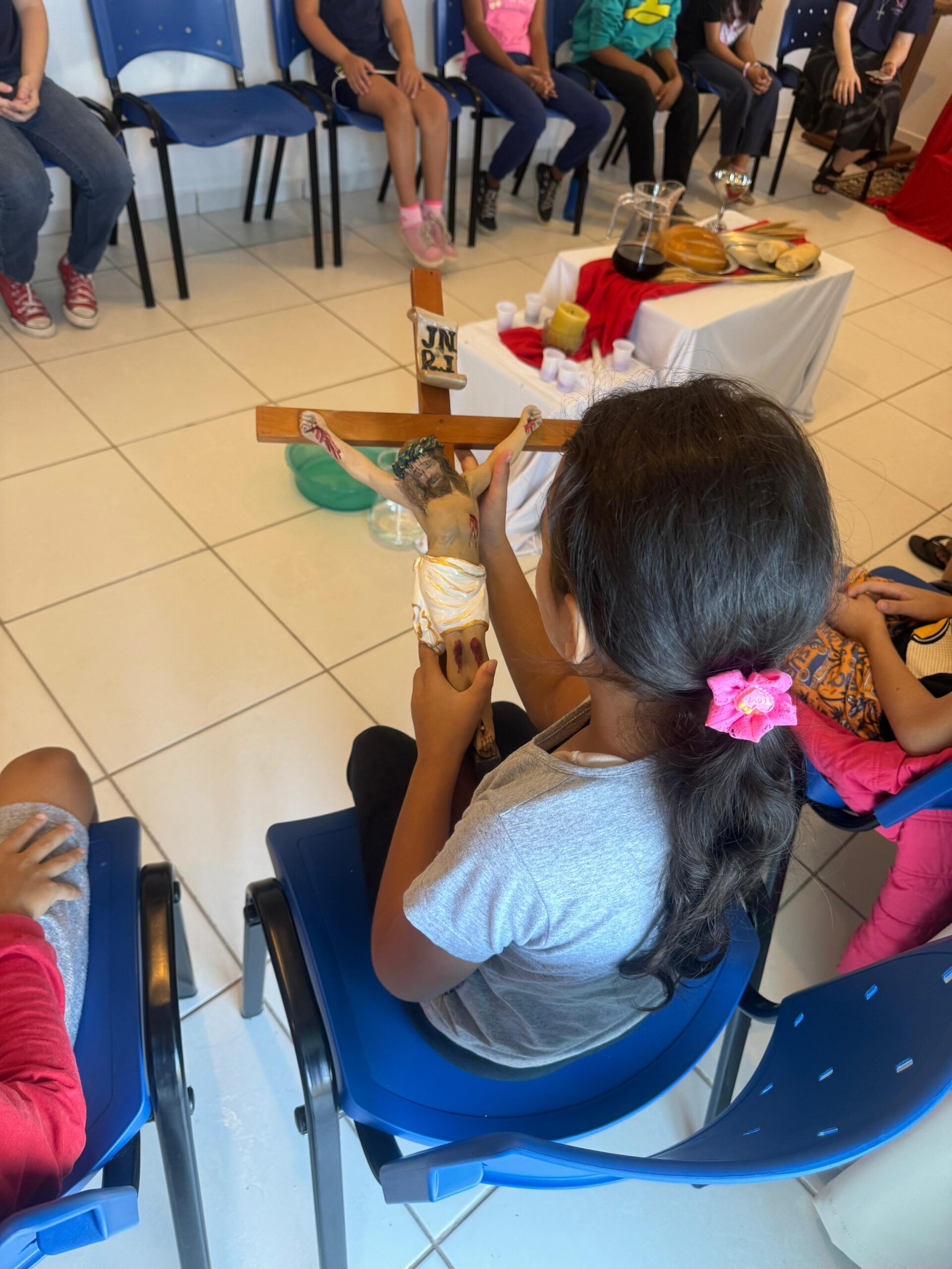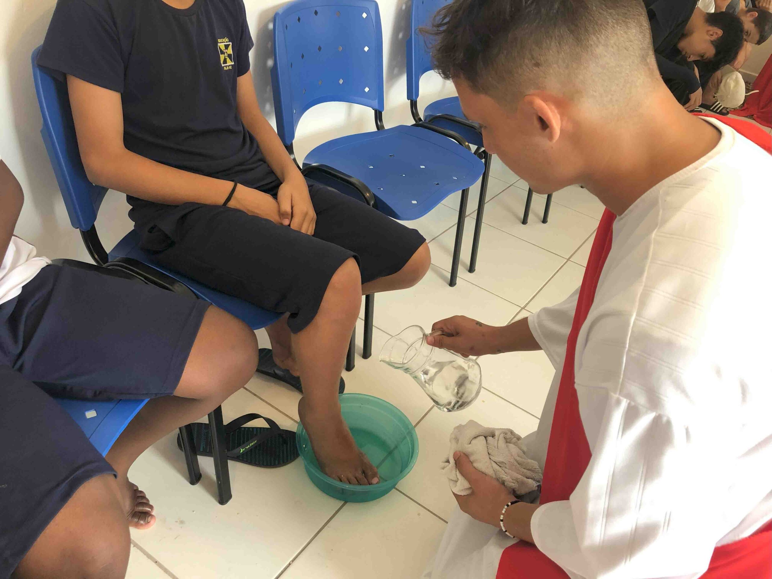 As celebrações realizadas por turmas tiveram como enfoque o Tríduo Pascal por meio da vivência da Última Ceia de Jesus, com destaque para o Lava-pés e a partilha do pão e do vinho, a entrega de Jesus na cruz, sinal do amor gratuito de Deus e, por fim, a experiência da Páscoa da Ressurreição, passagem da morte para a vida e ápice da fé cristã.