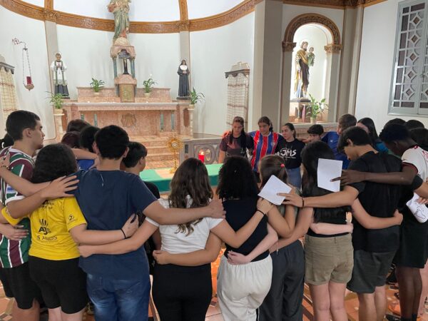 A assessora Mailla Oliveira, do Colégio Auxiliadora de Ribeirão Preto, ressalta: “A participação ativa de todos e o clima de fé e fraternidade contribuíram para uma experiência memorável e enriquecedora, reforçando o compromisso de cada um com os valores e objetivos de nosso retiro. Além disso, cada jovem teve a oportunidade de compartilhar suas experiências e fortalecer laços com os colegas. As dinâmicas facilitaram uma reflexão coletiva sobre o papel de cada um na construção de uma Igreja mais unida e dedicada. Agradecemos à Inspetoria Nossa Senhora Aparecida pela disponibilização deste rico material e a motivação para que possamos crescer juntos nesta jornada espiritual.”