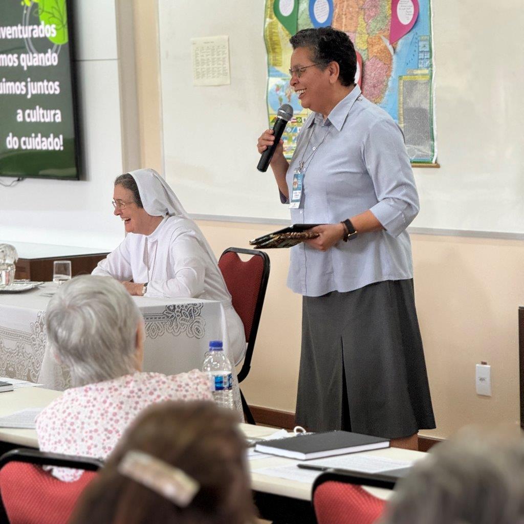 Também Irmã Maria Inês Vieira Ribeiro (MAD), Presidente emérita da Conferência dos Religiosos do Brasil (CRB), que esteve presencialmente em Cachoeira do Campo, ofereceu uma iluminação por meio de uma reflexão intitulada «Contribuição da Vida Consagrada hoje, neste Continente, a caminho do Sínodo. Como o Sínodo interpela a Vida Consagrada».