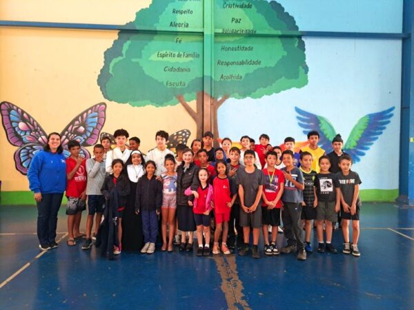 No período da tarde, foi acolhida pelos educandos. Dois deles interpretaram Madre Mazzarello e Dom Bosco durante a recepção. Em seguida, após a fala da Irmã Valentina, as crianças e adolescentes apresentaram o Hino da OSAF e uma dança temática sobre Maria, Mãe de Jesus, e os sonhos. Foi um momento muito animado, e a Irmã Paola trouxe uma mensagem importante para os educandos, instigando-os a pensarem sobre seus sonhos e a importância de estar com o coração aberto ao carisma salesiano.