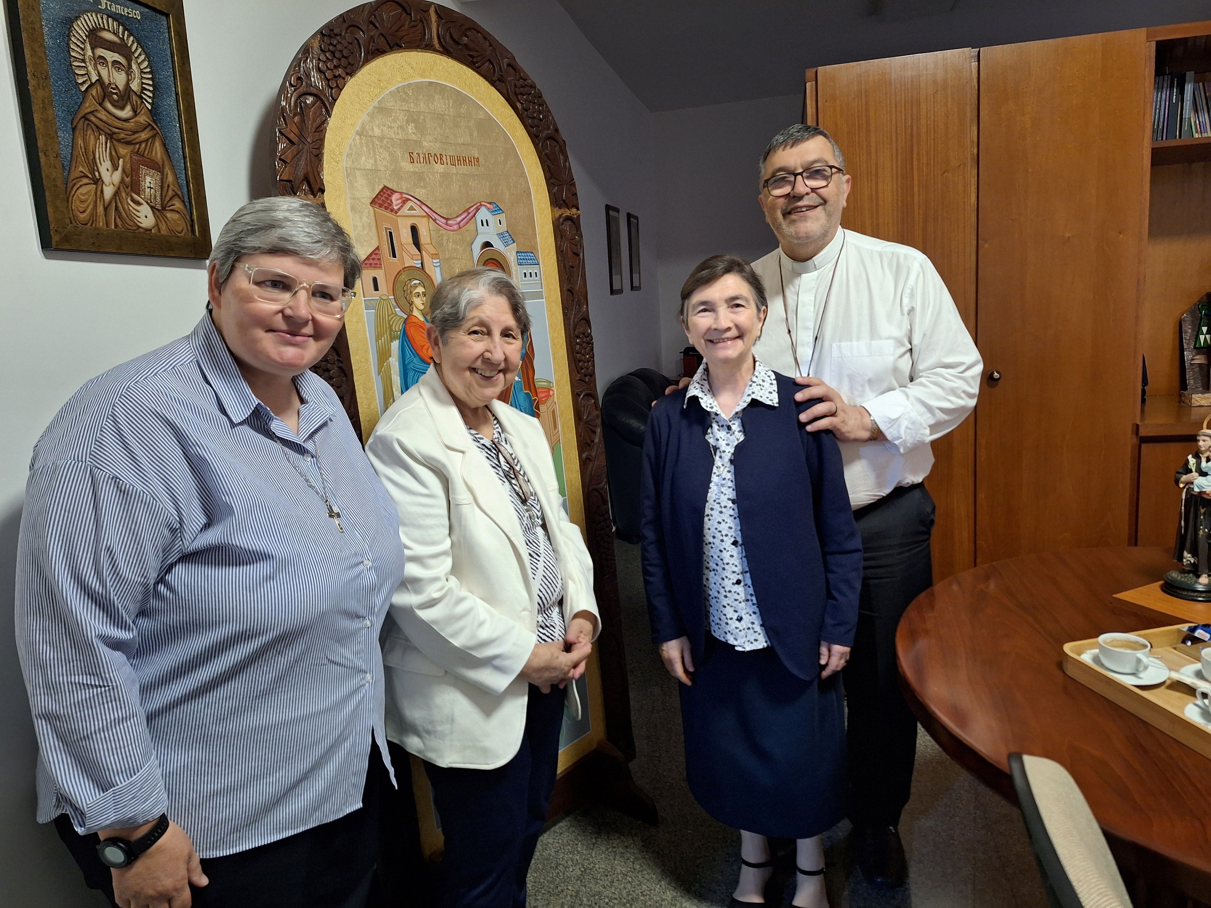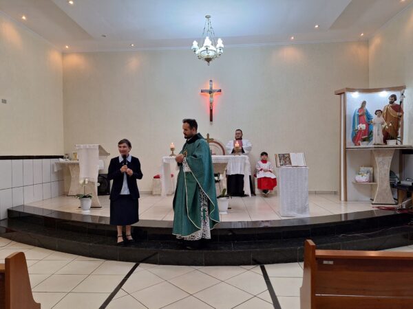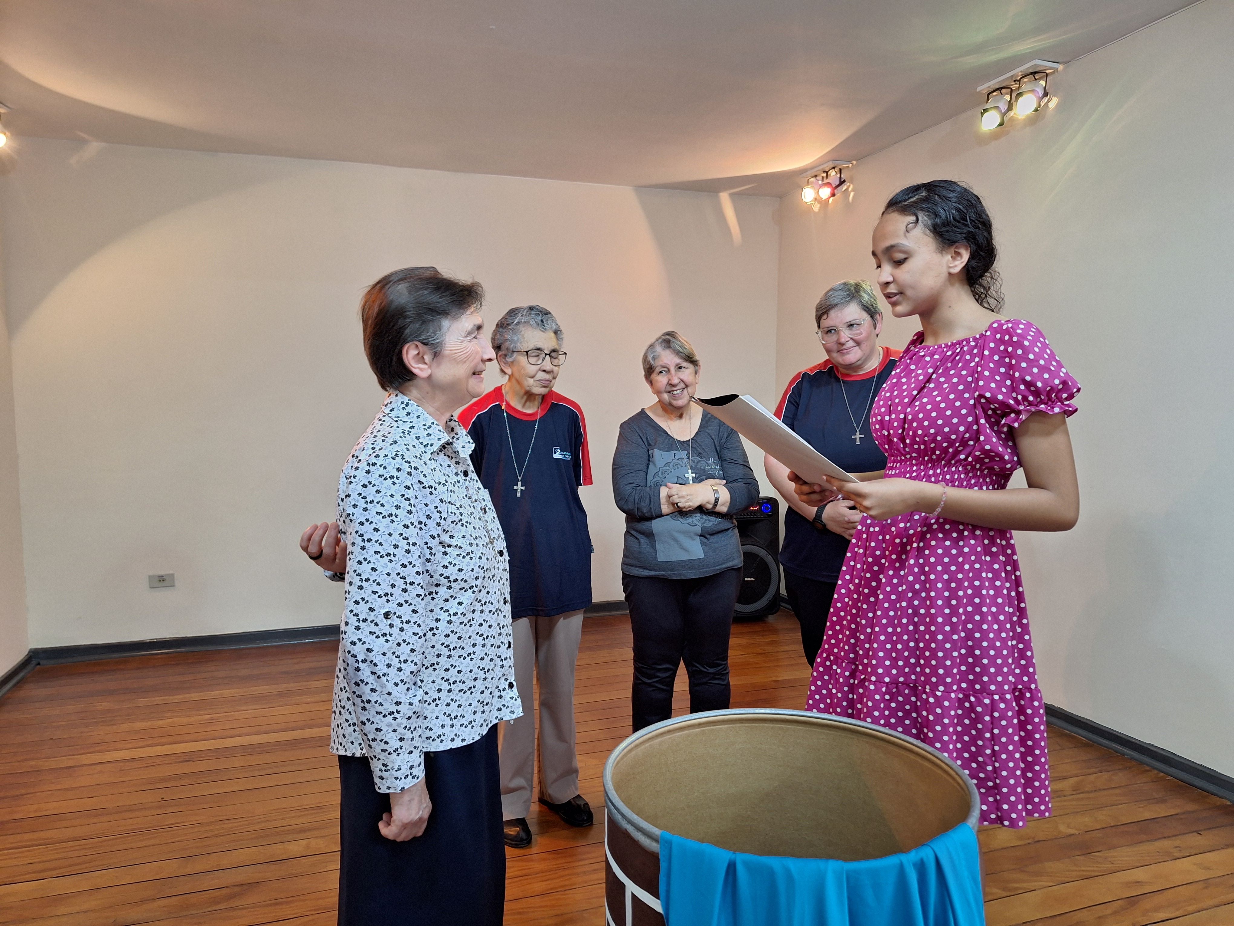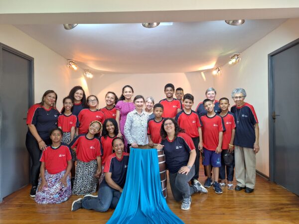 De 2 a 5 de setembro, a comunidade educativo-pastoral do Recanto da Cruz Grande, em Itapevi (SP), acolheu a visita da Conselheira Geral, Irmã Paola Battagliola, que cumpre uma agenda de visitas à Inspetoria Nossa Senhora Aparecida (BAP). Irmã Paola chegou no dia 2 de setembro, trazida pelas Irmãs da Casa inspetorial Helena Gesser e Gisele Rodrigues Coelho, acompanhadas por Irmã Eliane Petri, docente da Pontifícia Faculdade de Ciências da Educação Auxilium, de Roma, também em visita ao Brasil. A Conselheira foi acolhida com faixas e um canto de boas-vindas por funcionários, educadores, educandos e pelas Filhas de Maria Auxiliadora (FMA) que vivem naquela comunidade. O primeiro espaço a ser visitado foi a Capela, onde as Irmãs, acompanhadas pelas Coordenadoras da Administração e do Projeto, dirigiram-se para colocar sob a proteção de Nossa Senhora Auxiliadora esta visita. Irmã Maria José, diretora da Comunidade religiosa, saudou a Visitadora e, juntas, fizeram um breve momento de oração. Na parte da tarde, Irmã Paola, acompanhada pelas Irmãs Maria José e Metka, foi até a Cúria diocesana, onde teve um encontro com o Bispo, Dom Frei João Bosco Barbosa de Souza, da Ordem dos Frades Menores (OFM).