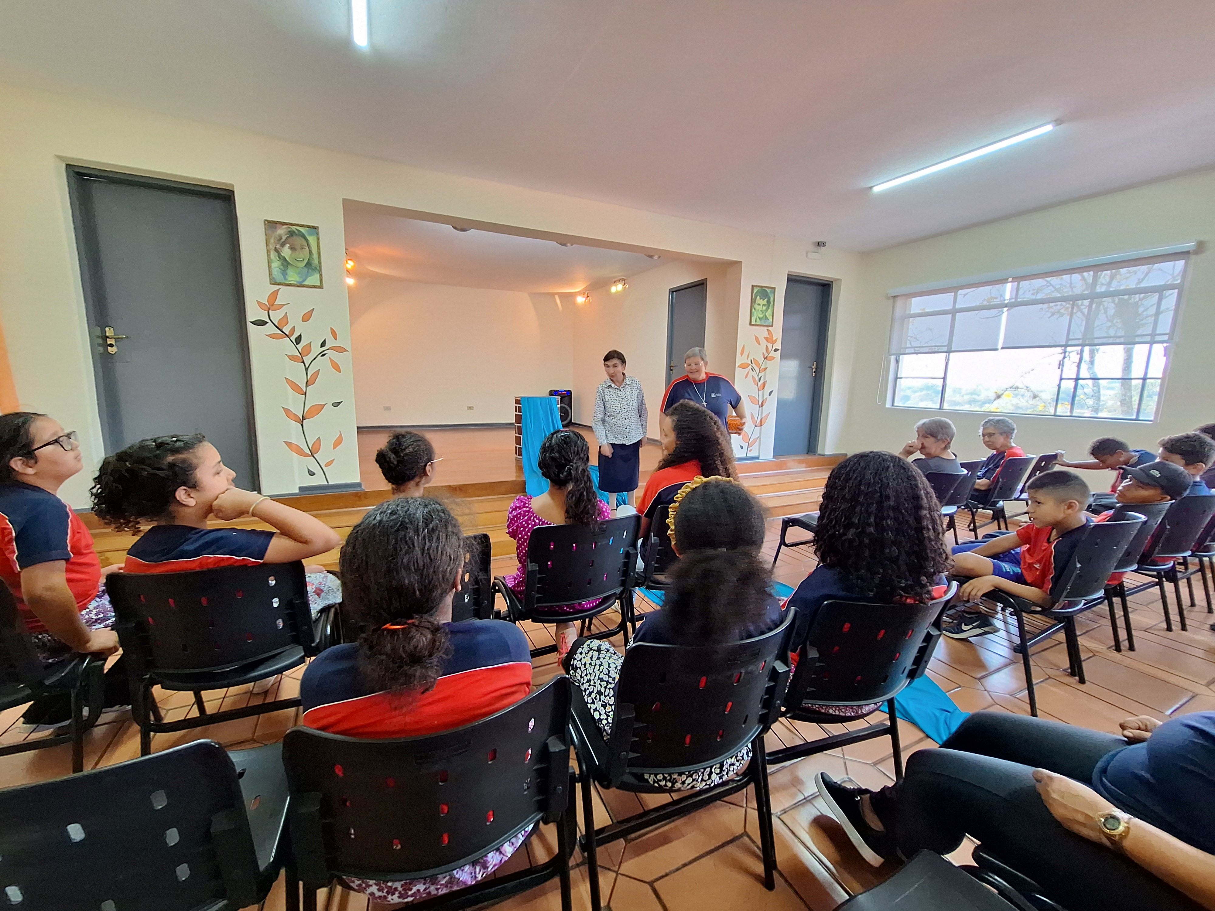 No dia 3 de setembro, Irmã Paola encontrou-se com o Grupo Gestor do Projeto: momento de partilhar acontecimentos, desafios, propostas, buscas e realizações. A Conselheira Geral mostrou grande interesse por tudo: ouviu com atenção, teceu considerações, sugeriu algumas possibilidades. Segundo Irmã Maria José, «ficamos gratas por sua presença comprometida». No início da tarde, junto com Irmã Metka e o casal de missionários – Ana e Rajko, eslovenos que estão fazendo uma experiência de voluntariado no Brasil, Irmã Paola foi conhecer a realidade na qual as FMA estão inseridas: passou pelas ruas mais próximas e visitou a família de um dos educandos da Obra. Ao retornar, teve um encontro especial com as crianças do Projeto “Crescendo em Cidadania”. À porta do salão D. Bosco, aguardava a Conselheira, de modo solene, o “senhor Giuseppe Mazzarello”, que a acompanhou ao seu lugar para ver e ouvir as jovens, lideradas por Main, cantando e dançando ao redor do poço de Mornese. Depois, houve um momento de interação com Irmã Paola, no qual ficou visível a curiosidade infantil: «Quantas línguas a senhora fala? Quais? Como se diz ...?» Por fim, Irmã Paola deixou uma mensagem ao grupo, incentivando-os ao estudo e à busca do bem. De noite, Irmã Paola participou da Celebração Eucarística na Comunidade São Francisco de Assis, oportunidade em que conheceu o Vigário Paroquial, Padre Hiago Willian dos Santos.