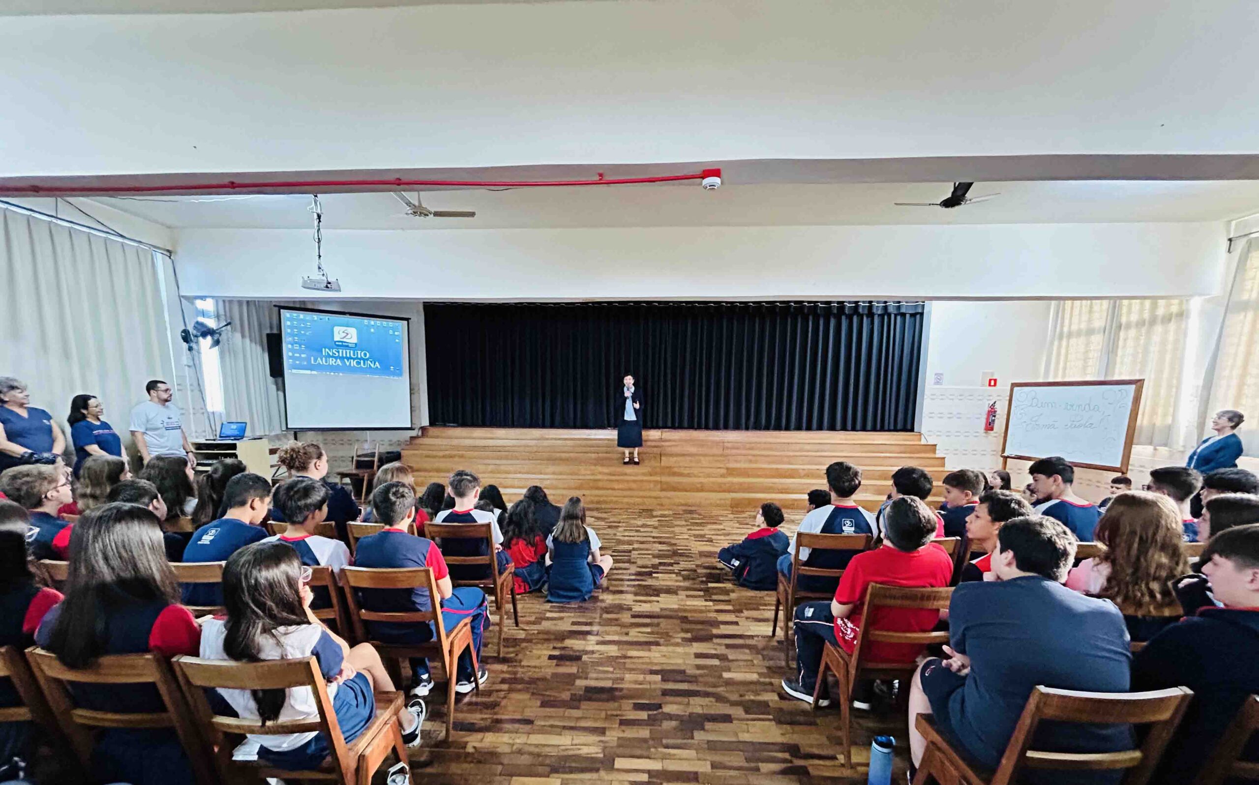 Irmã Paola, com sua carinhosa presença, dirigiu-se aos estudantes perguntando-lhes acerca dos seus anseios e sonhos. Em um gesto de proximidade e empatia, convidou-os a compartilharem seus sonhos, almejando inspirá-los a alçar voo em busca de seus ideais.